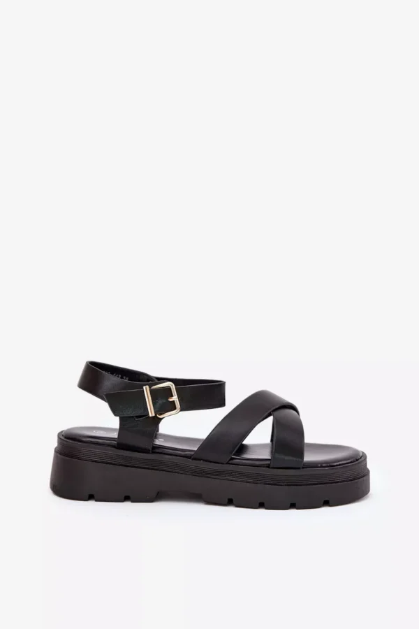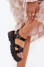 Stilīgas sieviešu sandales, izgatavotas no ekoloģiskās ādas. Ar platformas zoli. Divas krustveida siksnas priekšā piešķir tām izteiksmīgu raksturu. Piesprādzētas ar sprādzi ap potīti, tās nodrošina perfektu piegulumu. Ideāli piemērotas siltām dienām, labi saderīgas ar kleitām, svārkiem un biksēm. Izvēloties izmēru, lūdzu, izmantojiet izmēru tabulu.