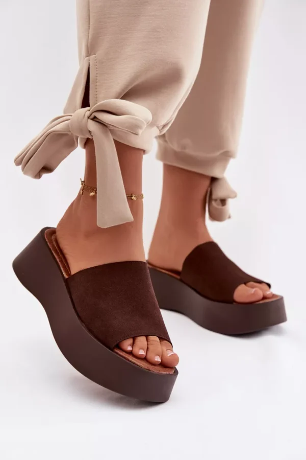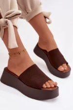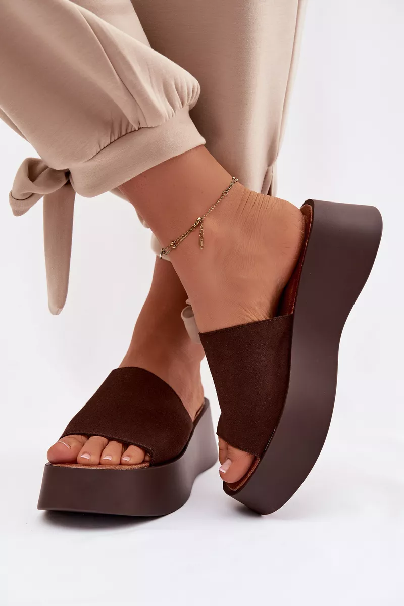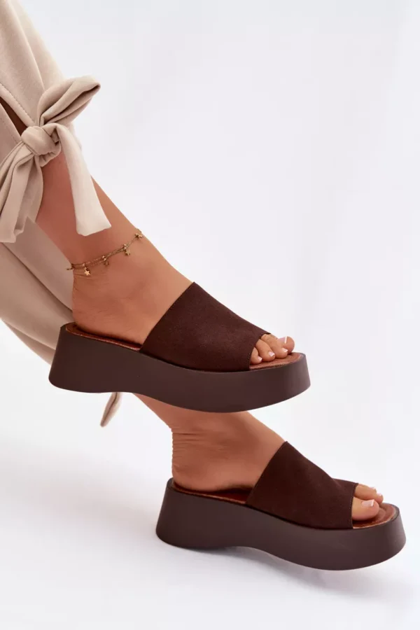 Sieviešu platforma čības ir ērta un stilīga izvēle siltām dienām. Siksnas ir izgatavotas no videi draudzīga zamšāda. Mīkstā zole nodrošina komfortu visas dienas garumā. Stabilā platforma nedaudz pacilā siluetu, neietekmējot komfortu. Šis modelis ir ideāli piemērots ikdienas vasaras stila apģērbiem. Izvēloties izmēru, skatieties izmēru tabulu.