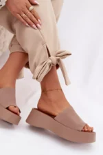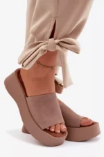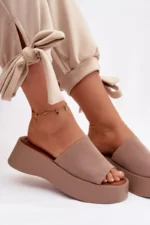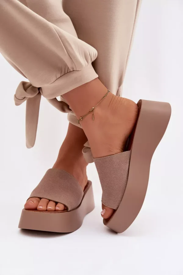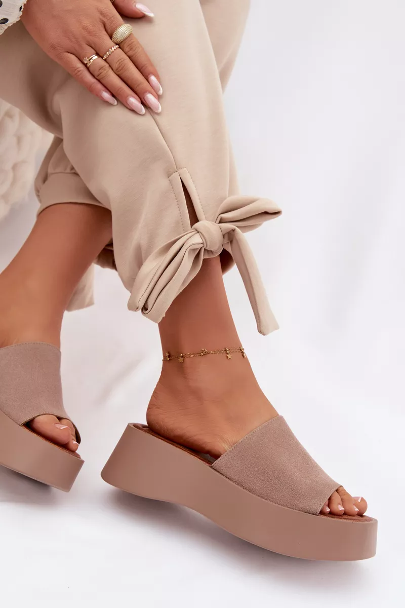 Sieviešu platforma čības ir ērta un stilīga izvēle siltām dienām. Siksnas ir izgatavotas no videi draudzīga zamšāda. Mīkstā zole nodrošina komfortu visas dienas garumā. Stabilā platforma nedaudz pacilā siluetu, neietekmējot komfortu. Šis modelis ir ideāli piemērots ikdienas vasaras stila apģērbiem. Izvēloties izmēru, skatieties izmēru tabulu.