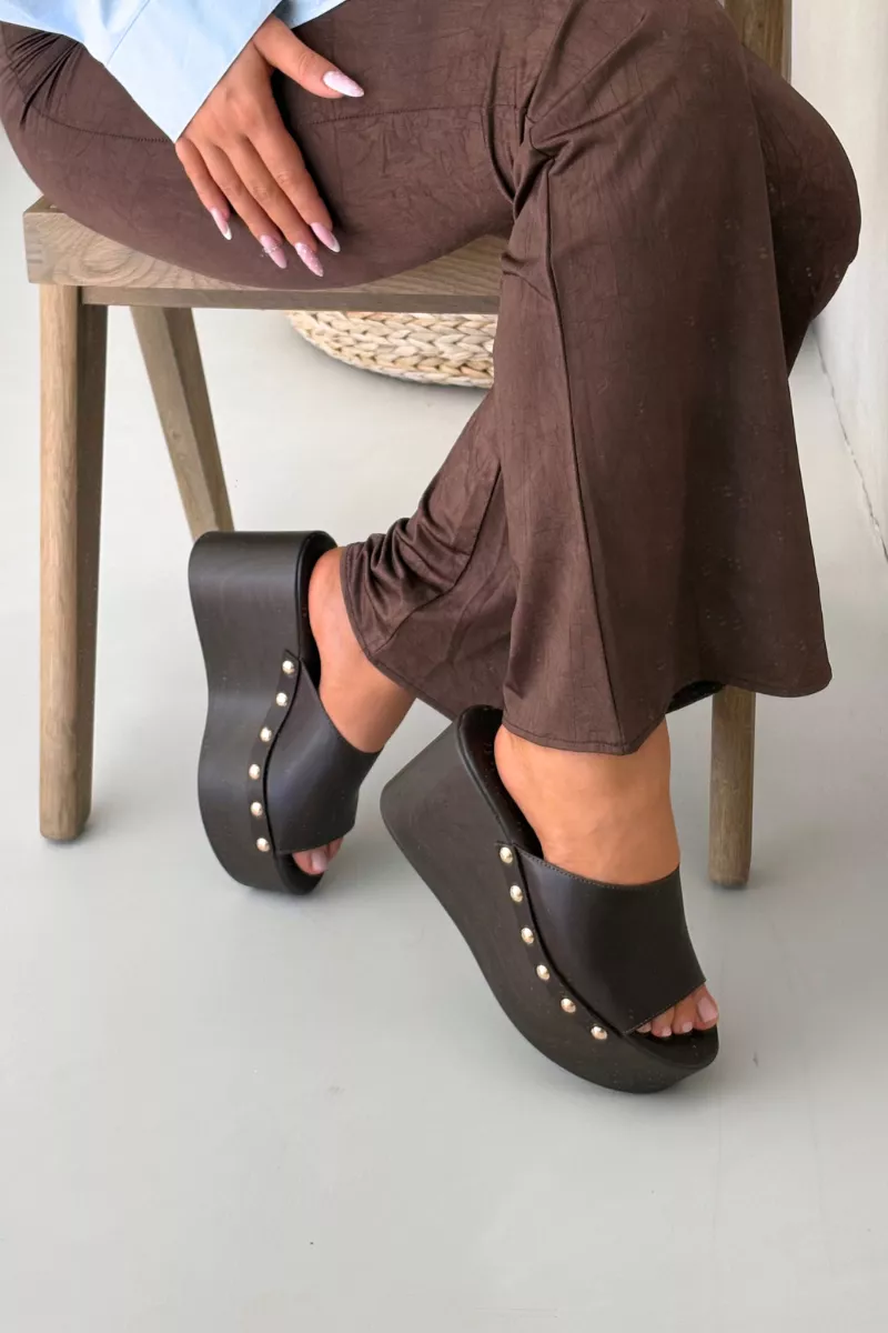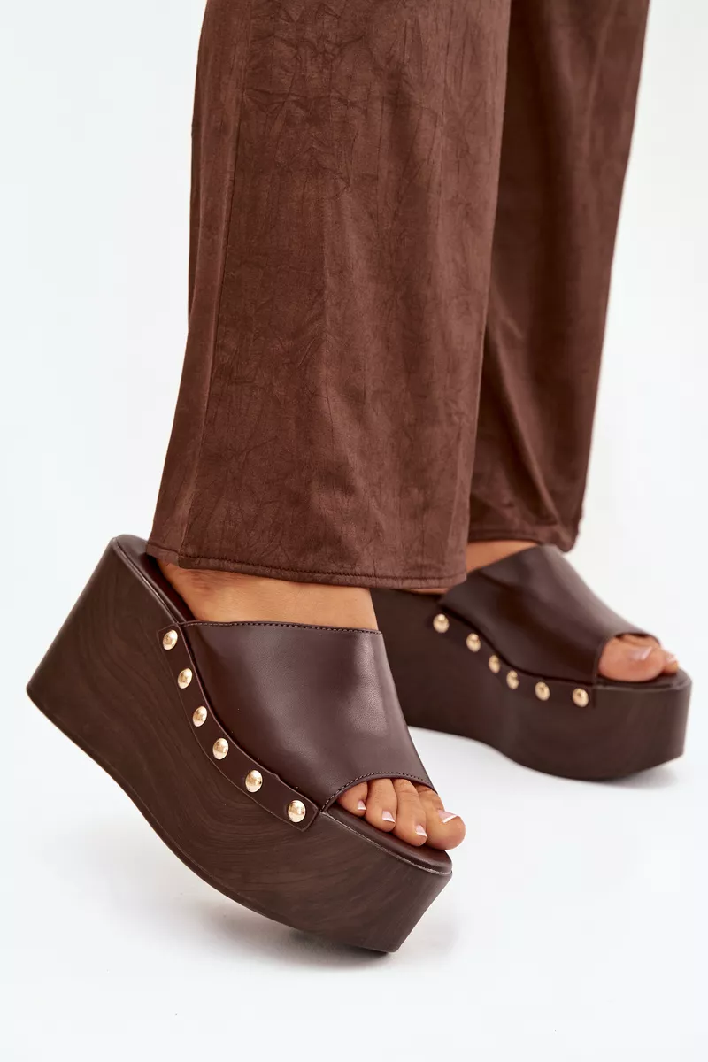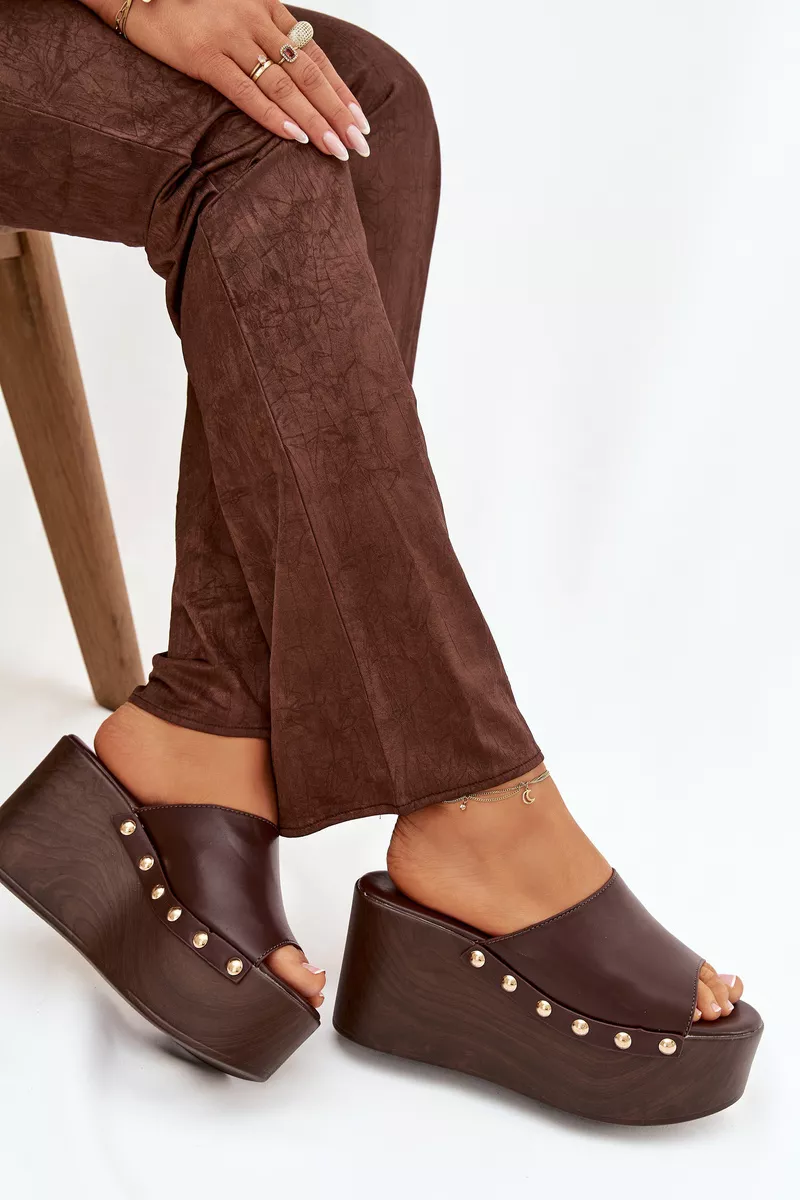 Stilīgas sieviešu čības no videi draudzīgas ādas ir ērta un iespaidīga izvēle ikdienas valkāšanai. Papēdis, apvienots ar platformu, nodrošina stabilitāti un komfortu, delikāti uzsverot siluetu. Zelta kniedes sānos piešķir modes pieskārienu kopējam izskatam. Šis modelis ir ideāli piemērots vasaras stila apģērbiem – kleitām, biksēm vai svārkiem. Tā ir ideāla izvēle sievietēm, kas novērtē komfortu apvienojumā ar izteiksmīgiem, stilīgiem detaļām. Izvēloties izmēru, lūdzu, izmantojiet izmēru tabulu.