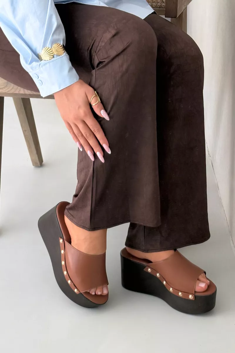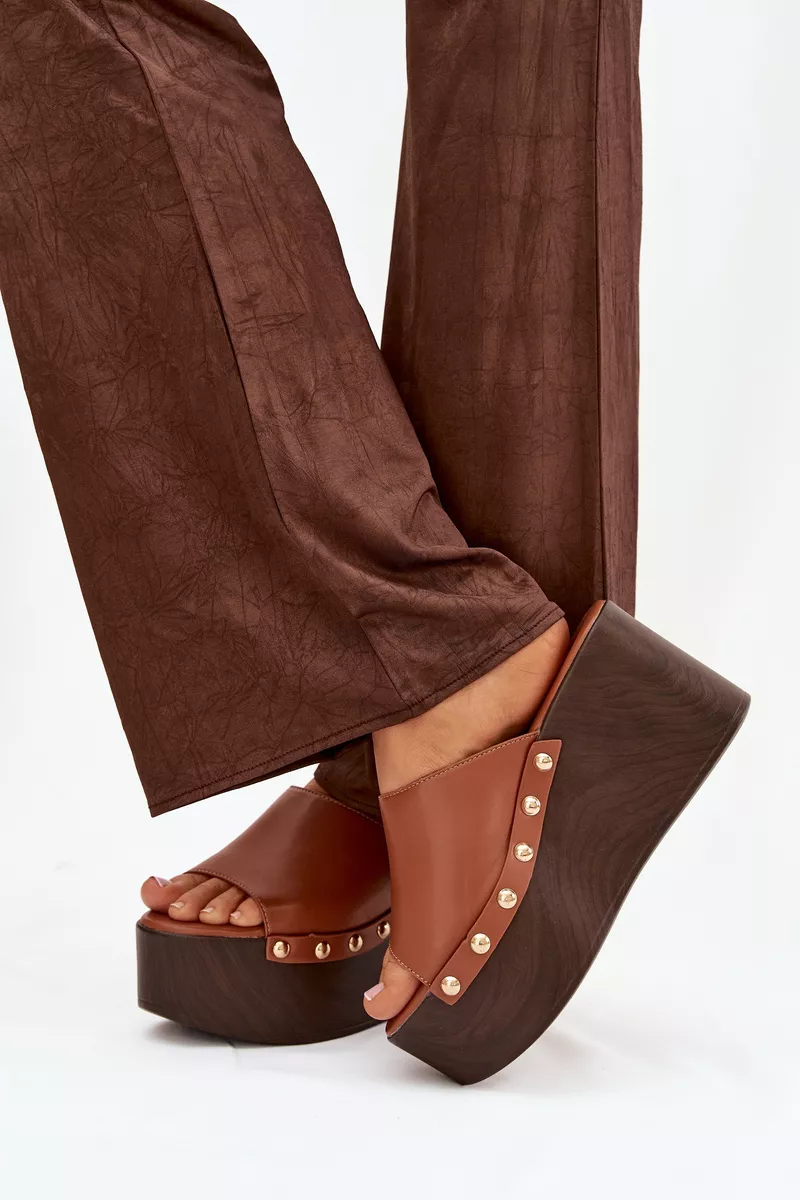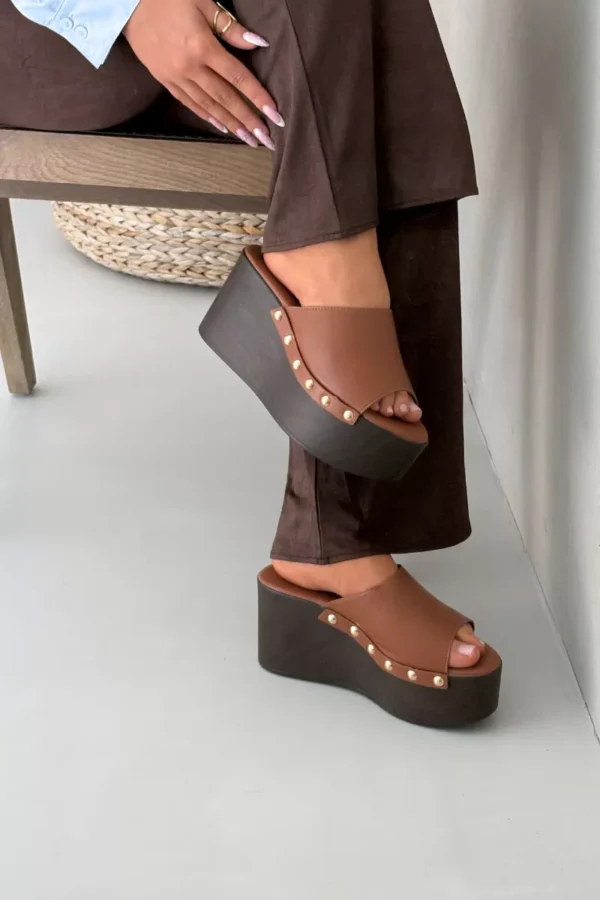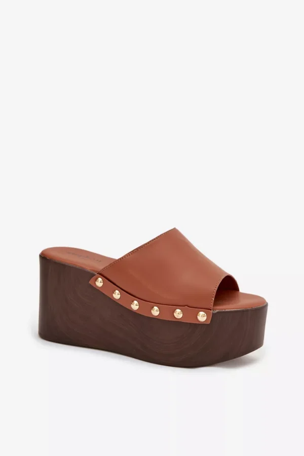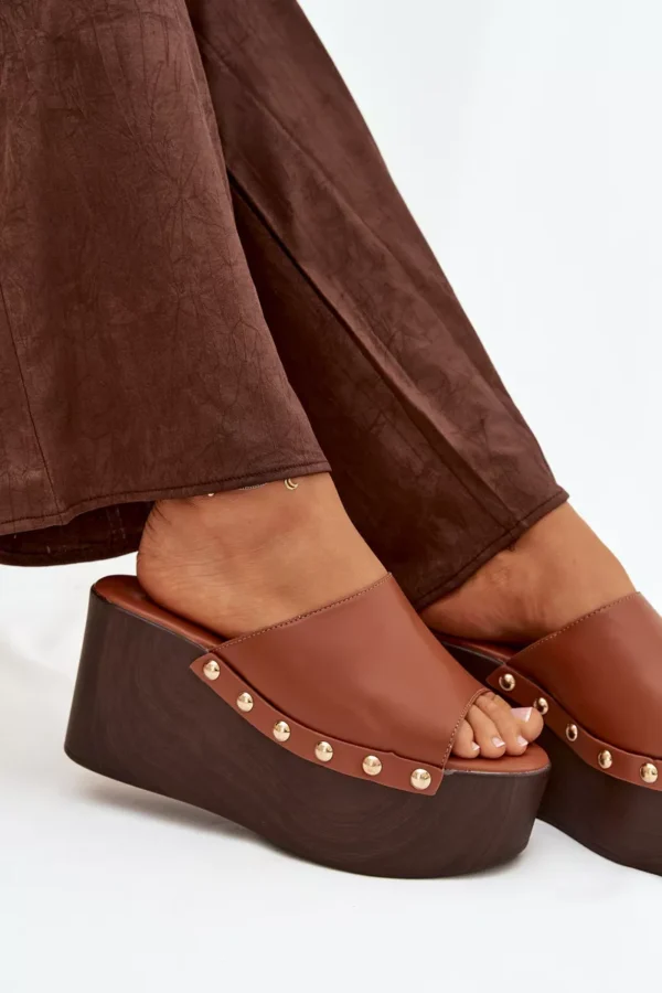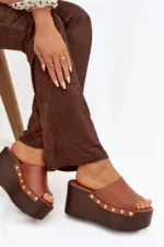 Stilīgas sieviešu čības no videi draudzīgas ādas ir ērta un iespaidīga izvēle ikdienas valkāšanai. Papēdis, apvienots ar platformu, nodrošina stabilitāti un komfortu, delikāti uzsverot siluetu. Zelta kniedes sānos piešķir modes pieskārienu kopējam izskatam. Šis modelis ir ideāli piemērots vasaras stila apģērbiem – kleitām, biksēm vai svārkiem. Tā ir ideāla izvēle sievietēm, kas novērtē komfortu apvienojumā ar izteiksmīgiem, stilīgiem detaļām. Izvēloties izmēru, lūdzu, izmantojiet izmēru tabulu.