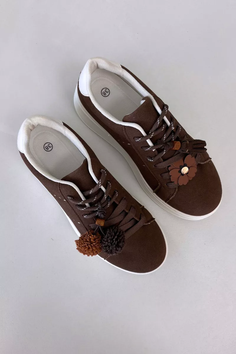Šie modernie sieviešu sporta apavi, kas izgatavoti no videi draudzīga zamšāda, ir ideāls komforta un stila apvienojums. Platforma diskrēti pacilā siluetu, vienlaikus nodrošinot ērtu iešanu. Dekoratīvie pomponi uz auklām piešķir meitenīgu šarmu un atšķir šos sporta apavus no klasiskajiem sporta apaviem. Putas zole, kas papildus pārklāta ar mīkstu materiālu, garantē komfortu pat ilgstošas valkāšanas laikā. Lieliska izvēle ikdienas pilsētas stilam. Izvēloties izmēru, lūdzu, izmantojiet izmēru tabulu.