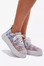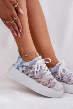 Platformas sporta kurpes ir lieliska izvēle, ja vēlaties pievienot dažus centimetrus. Šis acīm tveramais modelis izceļas ar savu unikālo virsu – adījuma raksts apvienojumā ar tīkliņu padara kurpes vieglas un elpojošas. Papildu priekšrocība ir putu polsterēta, izņemama zole, kas garantē komfortu visas dienas garumā. Šie apavi ir lieliska izvēle pilsētas stilam un vasaras pastaigām! Izvēloties izmēru, skatieties izmēru tabulu.