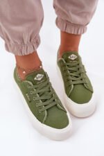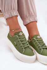Lee Cooper sieviešu sporta apavi, kas izgatavoti no tekstilmateriāla, apvieno komfortu un modernu izskatu. Tie ir uz platformas, kas diskrēti pacilā siluetu, nodrošinot komfortu un vieglumu visas dienas garumā. Klasiskā auklas aizdare nodrošina perfektu piegulumu, bet mīkstā tekstila zole nodrošina atbilstošu amortizāciju. Šie sporta apavi ir ideāla izvēle ikdienas stilam! Izvēloties savu izmēru, lūdzu, skatieties izmēru tabulu.
