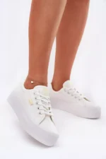 Lee Cooper sieviešu sporta apavi, kas izgatavoti no tekstilmateriāla, apvieno komfortu un modernu izskatu. Tie ir uz platformas, kas diskrēti pacilā siluetu, nodrošinot komfortu un vieglumu visas dienas garumā. Klasiskā auklas aizdare nodrošina perfektu piegulumu, bet mīkstā tekstila zole nodrošina atbilstošu amortizāciju. Šie sporta apavi ir ideāla izvēle ikdienas stilam! Izvēloties savu izmēru, lūdzu, skatieties izmēru tabulu.