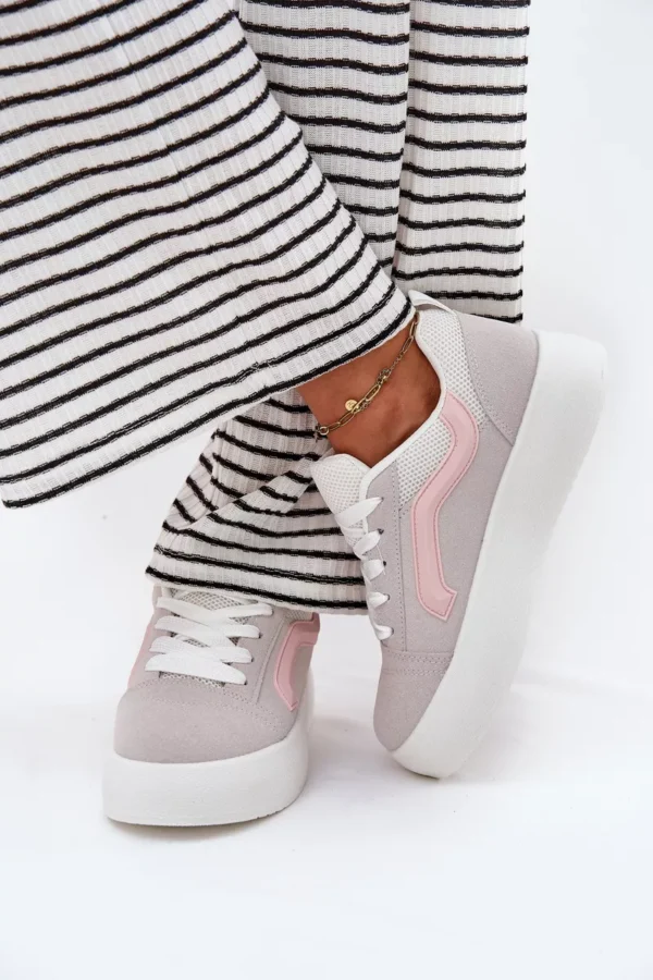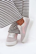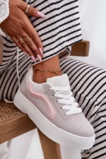 Sieviešu ekoloģiskās ādas sporta kurpes ir lieliska izvēle ikdienas valkāšanai, apvienojot stilu un komfortu. Izgatavotas uz platformas, tās nodrošina komfortu un papildu stabilitāti. Noapaļotie purngali garantē kustību brīvību, bet mīkstā, ar audumu pārklātā zole nodrošina komfortu visas dienas garumā. Šo sporta apavu klasiskais dizains padara tos ideālus ikdienas izskatam, piedāvājot gan funkcionalitāti, gan modernu izskatu. Izvēloties savu izmēru, lūdzu, izmantojiet izmēru tabulu.