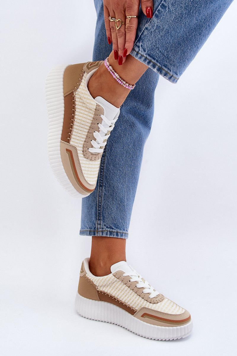 Šie modernie sporta apavi izceļas ar savdabīgu dubultu auklas dizainu, kas tos atšķir no pārējiem. Sporta apaviem ir bieza gumijas zole. Sporta apavi ir izgatavoti no ekoloģiskās ādas ar papildu perforācijām priekšpusē. Stāvieties uz nelielu platformu. Lielisks modelis, kas piestāvēs daudziem stiliem. Izvēloties izmēru, skatieties izmēru tabulu.