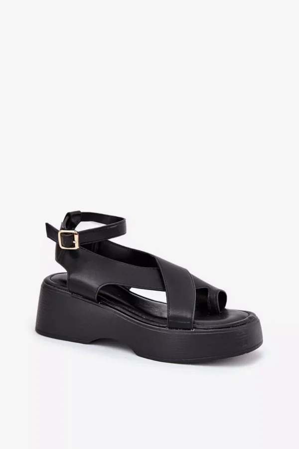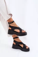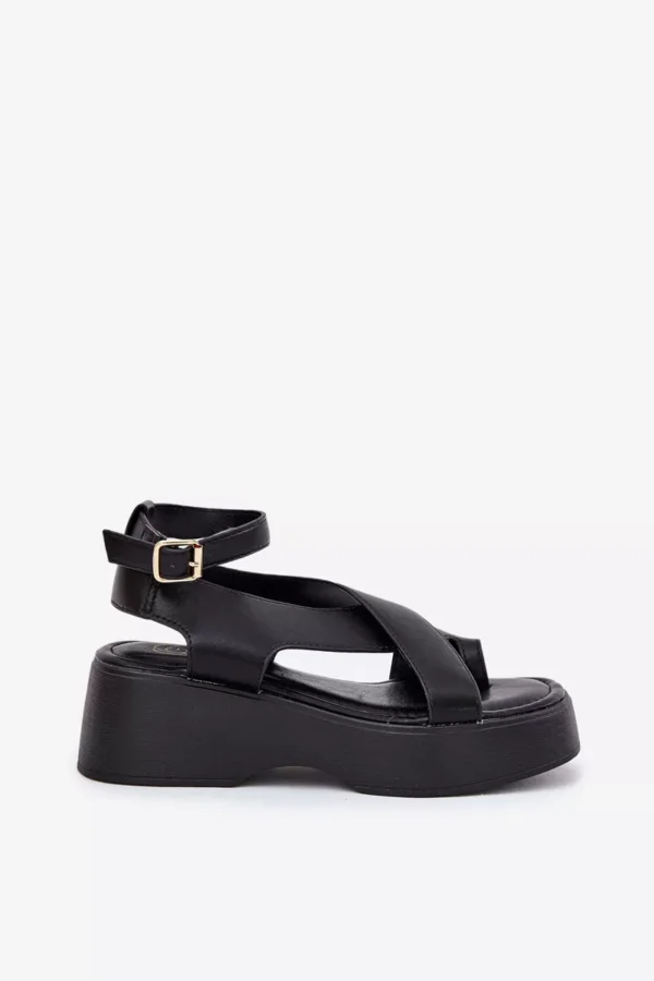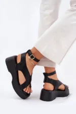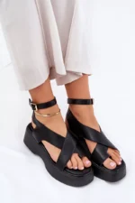 Sieviešu ekoloģiskās ādas sandales ar platformu un smalku papēdi, kas apvieno komfortu ar modernu izskatu. Piesprādzējas ap potīti ar sprādzi un regulējamu siksnu, lai nodrošinātu perfektu pielāgojumu. Mīksta zole nodrošina komfortu visas dienas garumā. Šie sandales ir ideāli piemēroti siltiem laikiem un labi saderas ar kleitām, svārkiem un biksēm, piešķirot viegluma pieskārienu jebkuram izskatam. Izvēloties izmēru, lūdzu, skatieties izmēru tabulu.