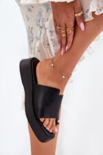 Sieviešu ekoloģiskās ādas čības ir eleganta un ērta izvēle siltajām dienām. Tās ir ar platformu, kas nodrošina vieglumu un stabilitāti visas dienas garumā. Šis modelis izceļas ar smalku dekoratīvu akcentu, kas piešķir tam unikālu šarmu. Mīkstā zole nodrošina komfortu, padarot šos čības par ideālu izvēli ikdienas stilam. Tās labi sader ar vasaras apģērbu, apvienojot funkcionalitāti ar modernu izskatu. Izvēloties izmēru, lūdzu, skatieties izmēru tabulu.