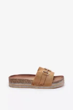 Sieviešu platformas čības ar zelta rotājumiem un spīdumiem, kamieļu krāsā Morisela