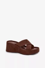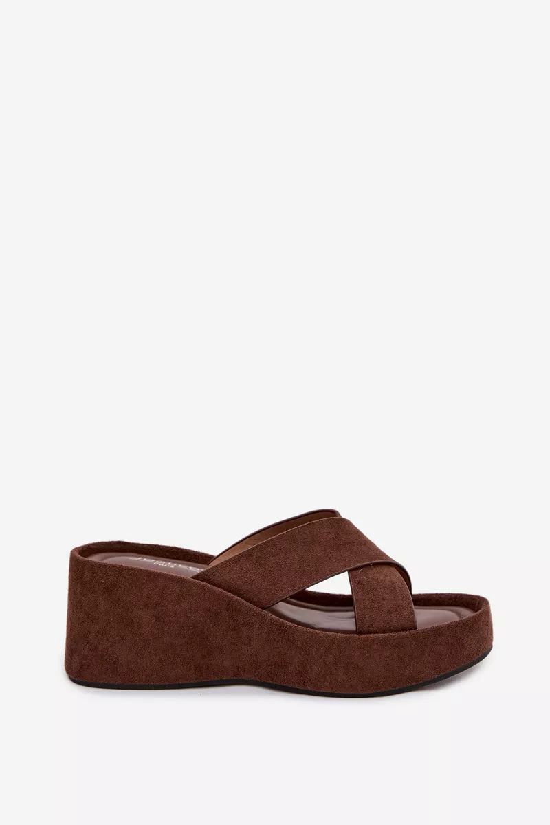 Sieviešu platformas šļūtenes, izgatavotas no ekoloģiskā zamšāda, šokolādes krāsā, Calorine