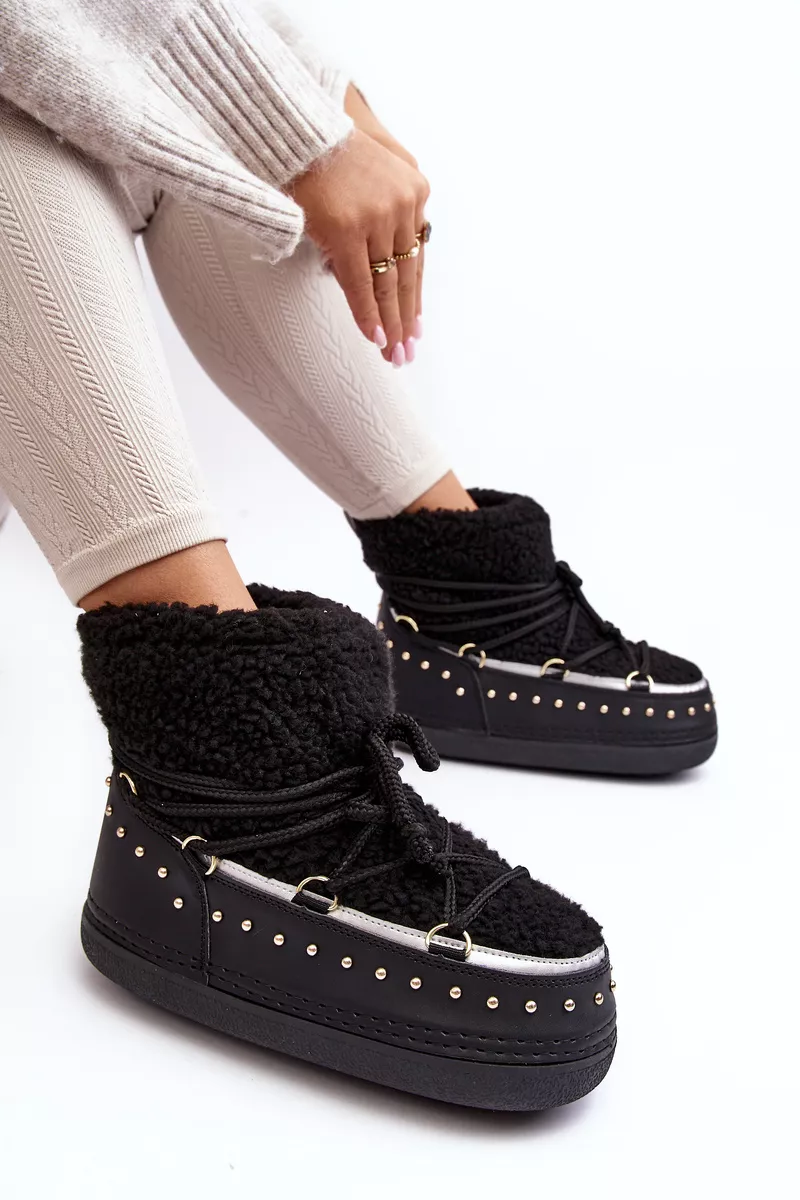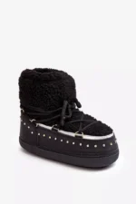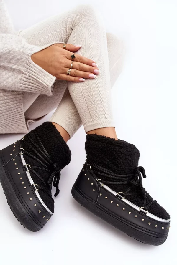 Šie unikālie sieviešu sniega zābaki ir izgatavoti no aukstumam un vējam izturīga materiāla. Augšdaļa ar mākslīgo kažokādu un kniedēm ir ideāli piemērota rudens-ziemas sezonai. Klasisks aizdares modelis ar papildu auklām. Zābaki ir veidoti uz plašas platformas. Tiem ir putu izolācija un iekšējais zābaku oderējums, kas nodrošina augstu aizsardzību aukstās dienās. Izvēloties izmēru, lūdzu, izmantojiet izmēru tabulu.