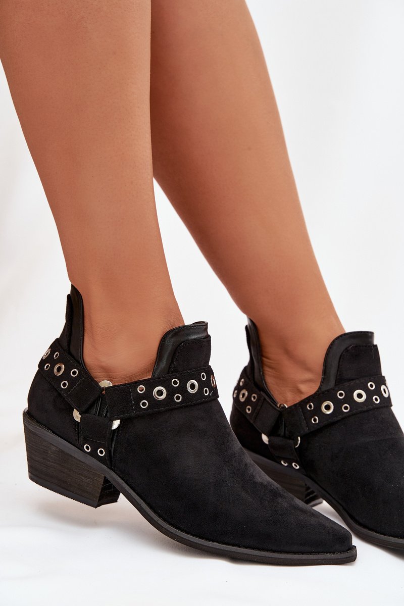 Stilīgi sieviešu zābaki, izgatavoti no videi draudzīga zamšāda. Tie ir ar zemu, smaili papēdi, kas nodrošina stabilitāti un komfortu, bet smaile purngala vizuāli pagarina kāju. Augšējā daļa ar dekoratīvām strīpām un iespaidīgiem izgriezumiem piešķir tiem modernu un oriģinālu raksturu. Aizdares modelis ļauj tos ātri uzvilkt, padarot šos zābakus ideālus gan ikdienas, gan elegantiem stiliem. Izvēloties izmēru, skatieties izmēru tabulu.