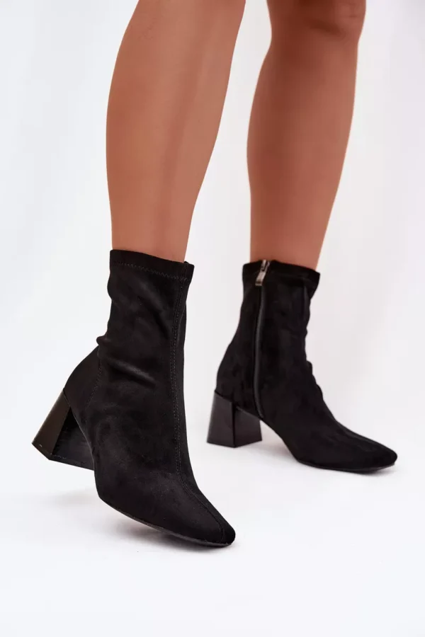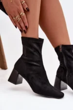 Sieviešu potītes zābaki no mīksta, videi draudzīga zamšāda ir lieliska izvēle sievietēm, kas novērtē elegances un komforta apvienojumu. Modelis ar stabilu, kolonnveida papēdi nodrošina komfortu valkāšanā un nedaudz izsmalcina siluetu. Sānos ir praktiska rāvējslēdzēja, kas atvieglo zābaku uzvilkšanu un novilkšanu.