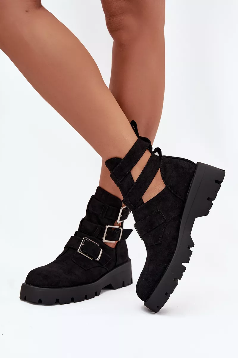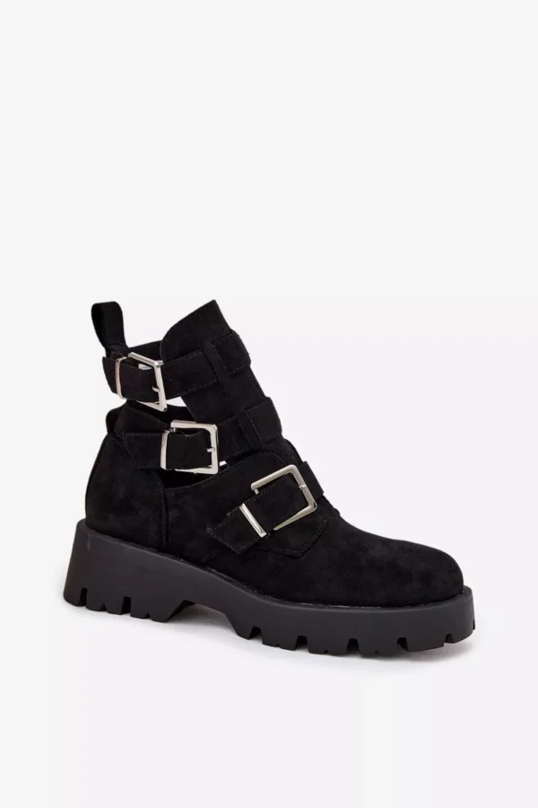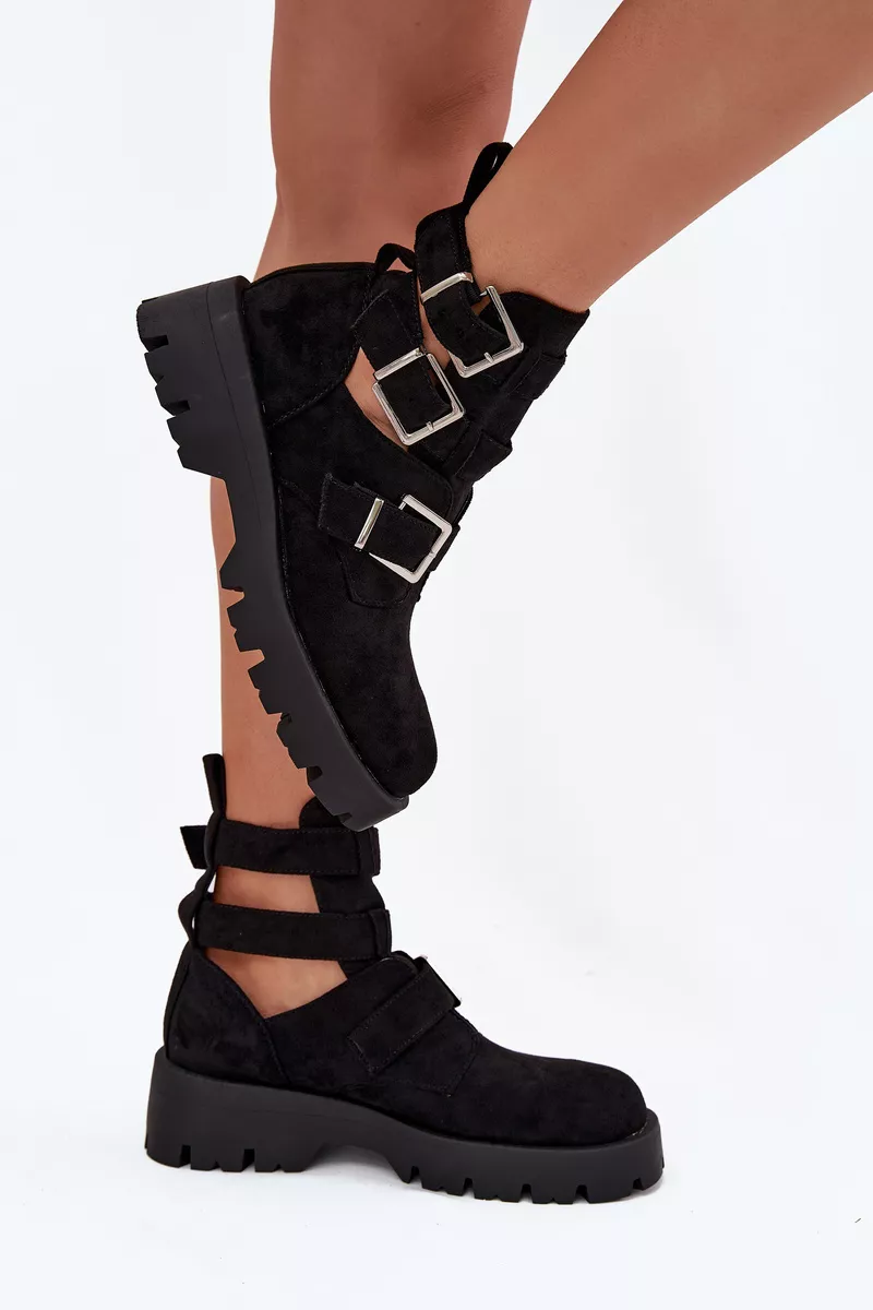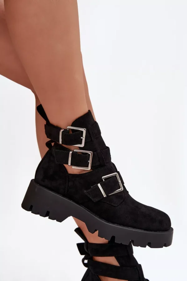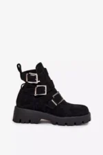 Sieviešu zābaki ar plakanām papēžiem ir komforta un modernā izskata apvienojums. Modelis izceļas ar izgriezumiem, kas piešķir tam vieglumu un modernitāti, bet sudraba sprādzes siksnas piešķir tam smalku, elegantu detaļu. Noapaļotais purngals nodrošina komfortu ejot, bet slip-on dizains ļauj ātri un viegli uzvilkt kurpes. Stilīgais siluets padara šos zābakus ērtus gan ikdienas, gan nedaudz formālākiem izskatiem, piešķirot tiem modernu akcentu. Izvēloties izmēru, lūdzu, izmantojiet izmēru tabulu. Izvēloties izmēru, lūdzu, izmantojiet izmēru tabulu.
