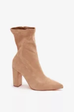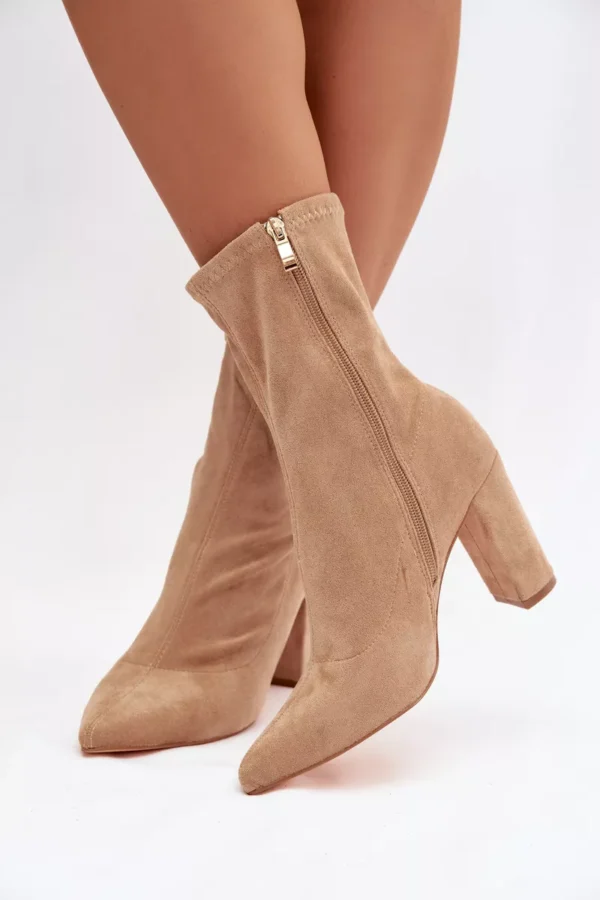 Šie eleganti sieviešu potītes zābaki, kas izgatavoti no videi draudzīga zamšāda, ir modelis, kas izcels jebkuru stilu. Stabilais, kolonnveida papēdis nodrošina komfortu un sievišķīgu izskatu, bet smaile purngals vizuāli pagarina kājas. Piesprādzēti ar ērtu rāvējslēdzēju, kas atvieglo to uzvilkšanu un noņemšanu. Smalkais izšuvums uz augšdaļas piešķir stilīgu detaļu, kas izceļ šo modeli. Ideāli piemēroti gan ikdienas, gan elegantiem apģērbiem. Lūdzu, izvēloties izmēru, skatieties izmēru tabulu. Lūdzu, izvēloties izmēru, skatieties izmēru tabulu.