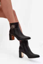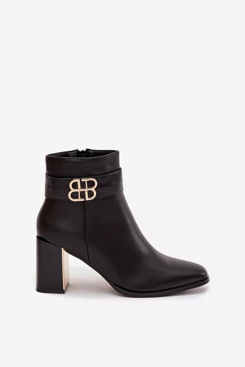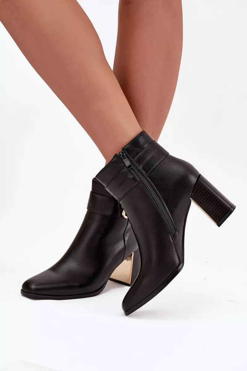 Sieviešu potītes zābaki uz papēža ar siksnu un zelta detaļām Black Galinne