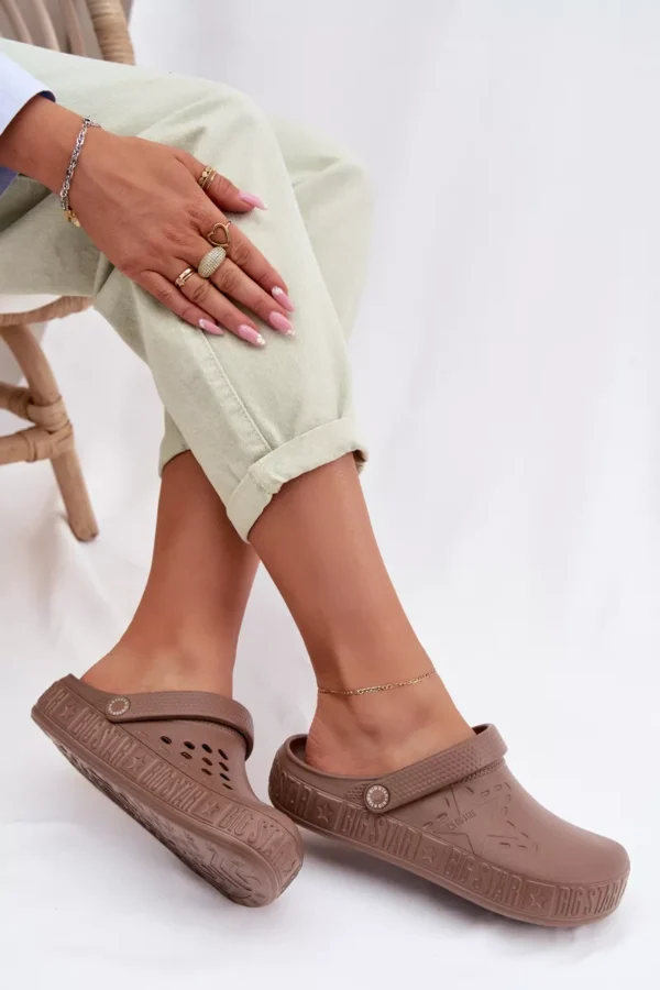 Sieviešu čības Big Star, kas izgatavotas no putu materiāla, ir ideāla izvēle siltajām dienām. Elastīgais, mīkstais materiāls nodrošina komfortu un vieglu tīrīšanu – piemērots visur, kur svarīga ir brīvība. Modelim ir pārvietojama papēža siksna, ko var pārvietot uz priekšu vai atpakaļ, lai pielāgotu apavus savām vajadzībām. Plašā priekšpuse nodrošina komfortu un pietiekamu vietu jūsu kājām. Ideālas čības dienām pie baseina, pludmalē, vasaras ceļojumos vai atpūšoties dārzā. Vieglas, funkcionālas un neaizstājamas vasarā. Vieglas, praktiskas un gatavas jebkuram vasaras piedzīvojumam. Izvēloties izmēru, skatieties izmēru tabulu.