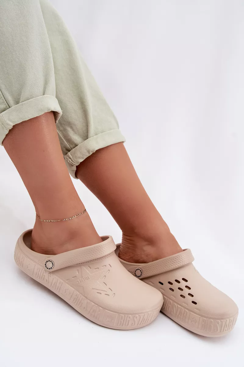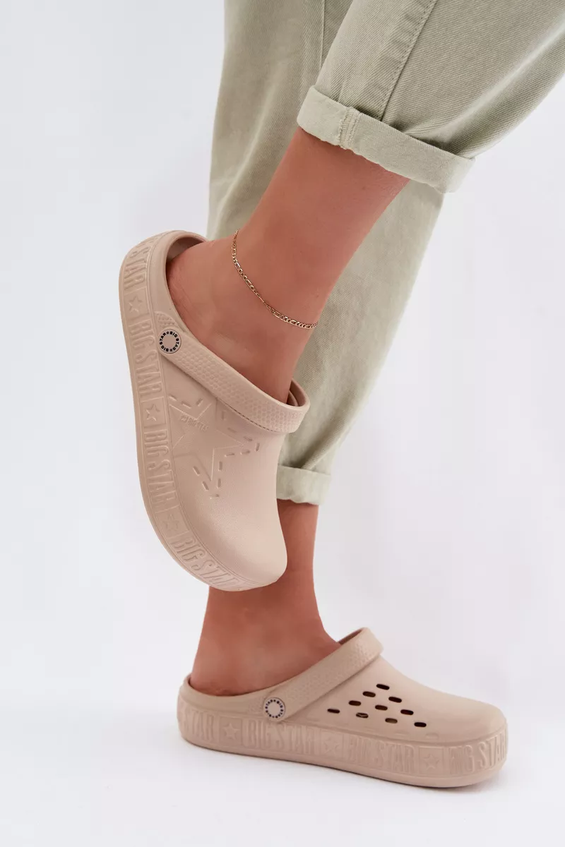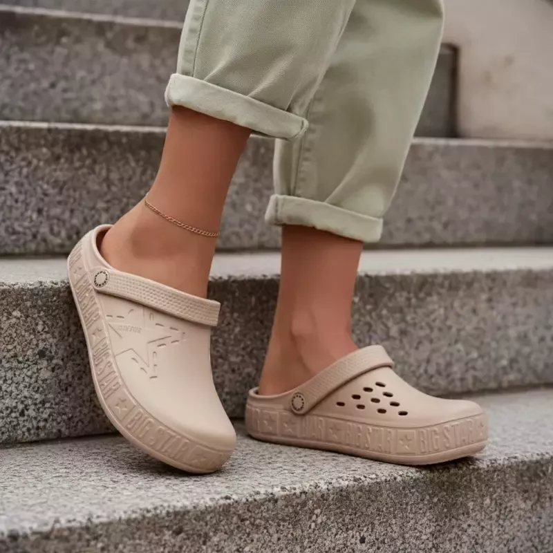 Sieviešu čības Big Star, kas izgatavotas no putu materiāla, ir ideāla izvēle siltajām dienām. Elastīgais, mīkstais materiāls nodrošina komfortu un vieglu tīrīšanu – piemērots visur, kur svarīga ir brīvība. Modelim ir pārvietojama papēža siksna, ko var pārvietot uz priekšu vai atpakaļ, lai pielāgotu apavus savām vajadzībām. Plašā priekšpuse nodrošina komfortu un pietiekamu vietu jūsu kājām. Ideālas čības dienām pie baseina, pludmalē, vasaras ceļojumos vai atpūšoties dārzā. Vieglas, funkcionālas un neaizstājamas vasarā. Vieglas, praktiskas un gatavas jebkuram vasaras piedzīvojumam. Izvēloties izmēru, skatieties izmēru tabulu.