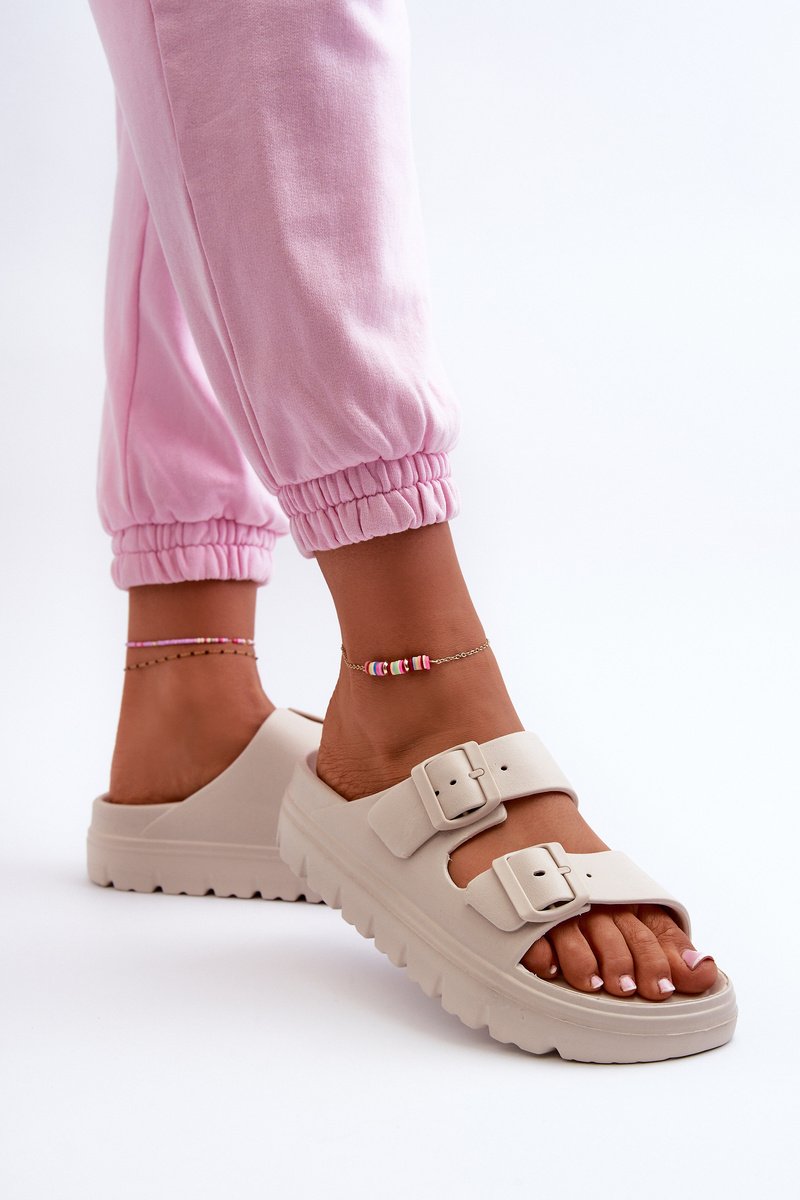 Vieglas un ērtas sieviešu putu čības, ideāli piemērotas vasarai. Platforma nodrošina komfortu visas dienas garumā. Divas regulējamas siksnas ideāli pielāgojas kājai, padarot šos čības gan praktiskas, gan stilīgas. Lūdzu, izvēloties savu izmēru, skatieties izmēru tabulu.