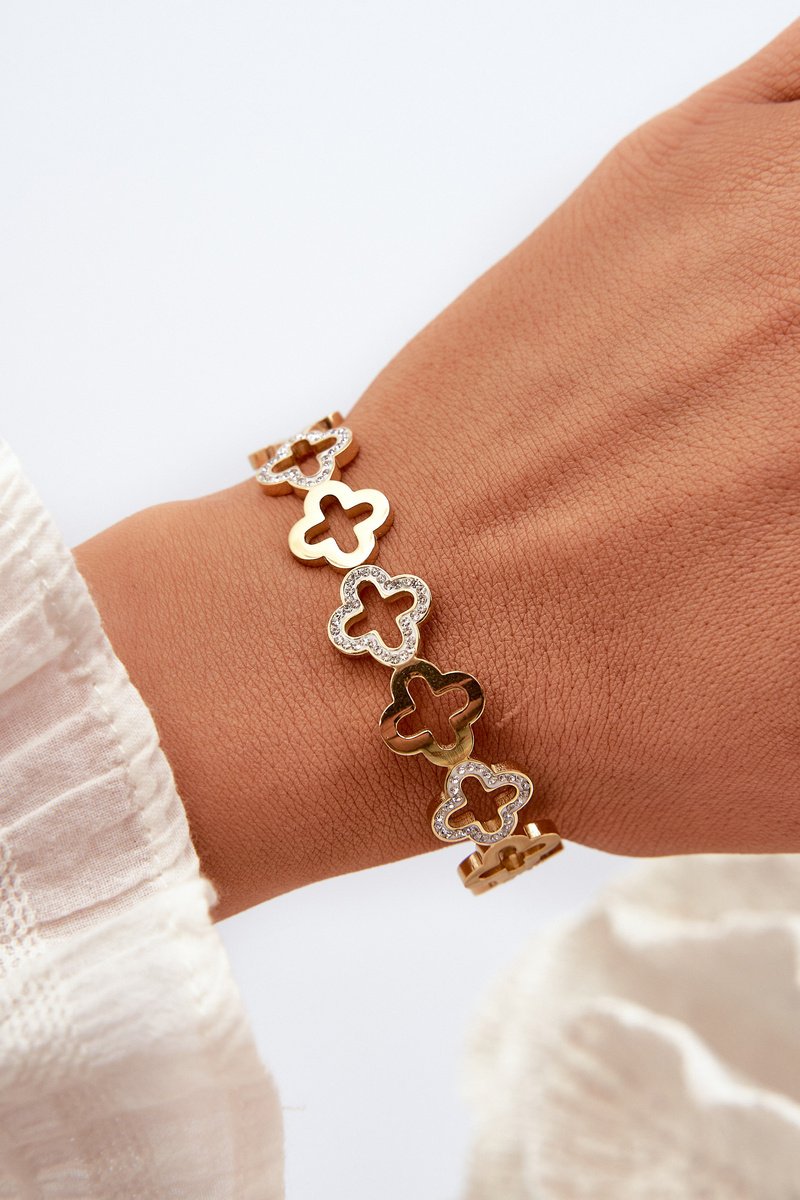 Sieviešu rokassprādze ar ziediem no nerūsējošā tērauda un zelta