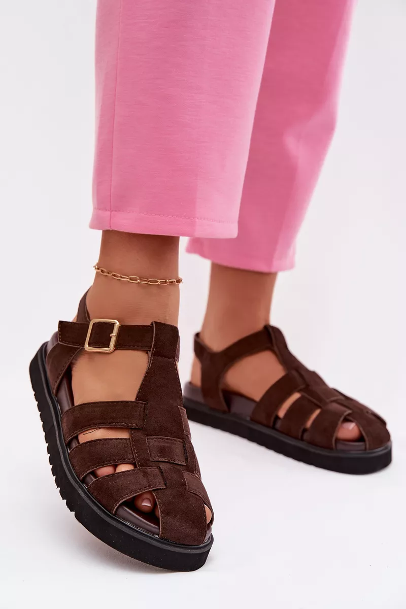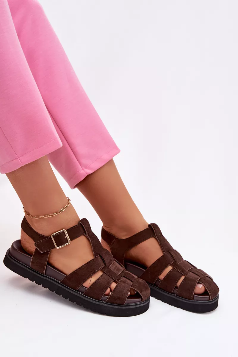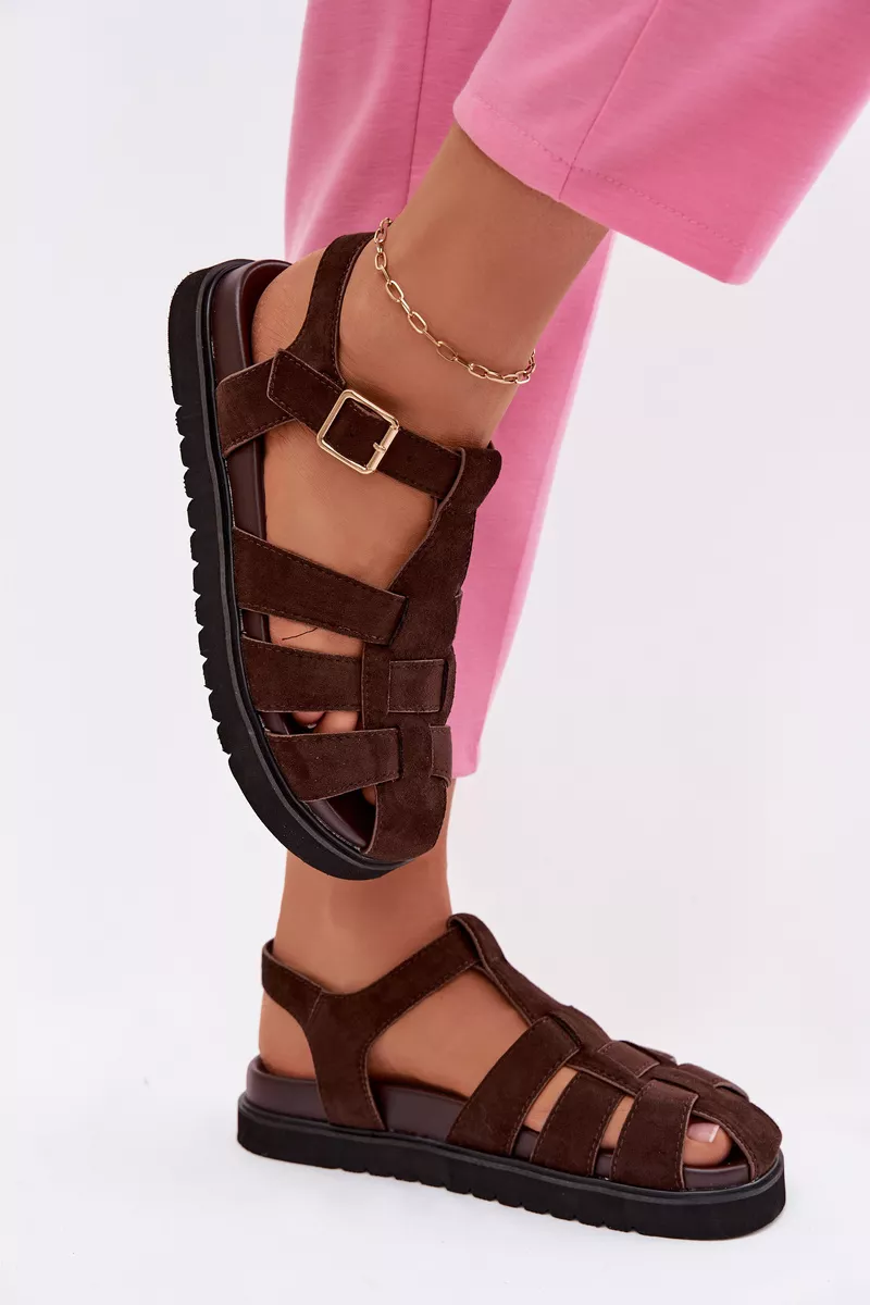 Šīs sieviešu sandales, kas iedvesmojušās no romiešu stila, apvieno vasaras vieglumu un komfortu. Izgatavotas no videi draudzīga zamšāda, tās izskatās stilīgi un eleganti, bet platforma nodrošina komfortu un stabilitāti katrā solī. Regulējama siksna ar zelta sprādzi ļauj pielāgot tos jūsu kājām. Lieliska izvēle ikdienas vasaras apģērbiem, kas apvieno modernu izskatu ar funkcionalitāti. Izvēloties izmēru, skatieties izmēru tabulu.