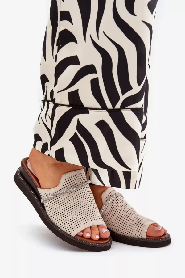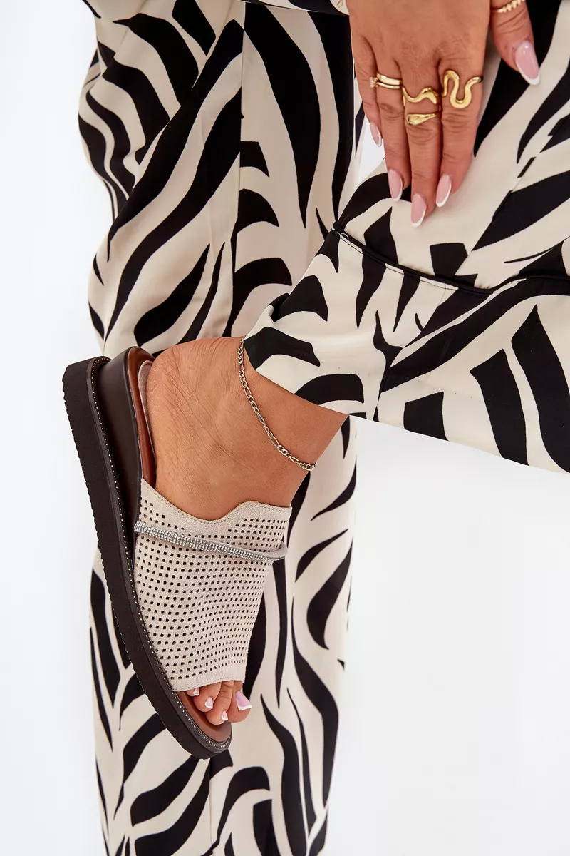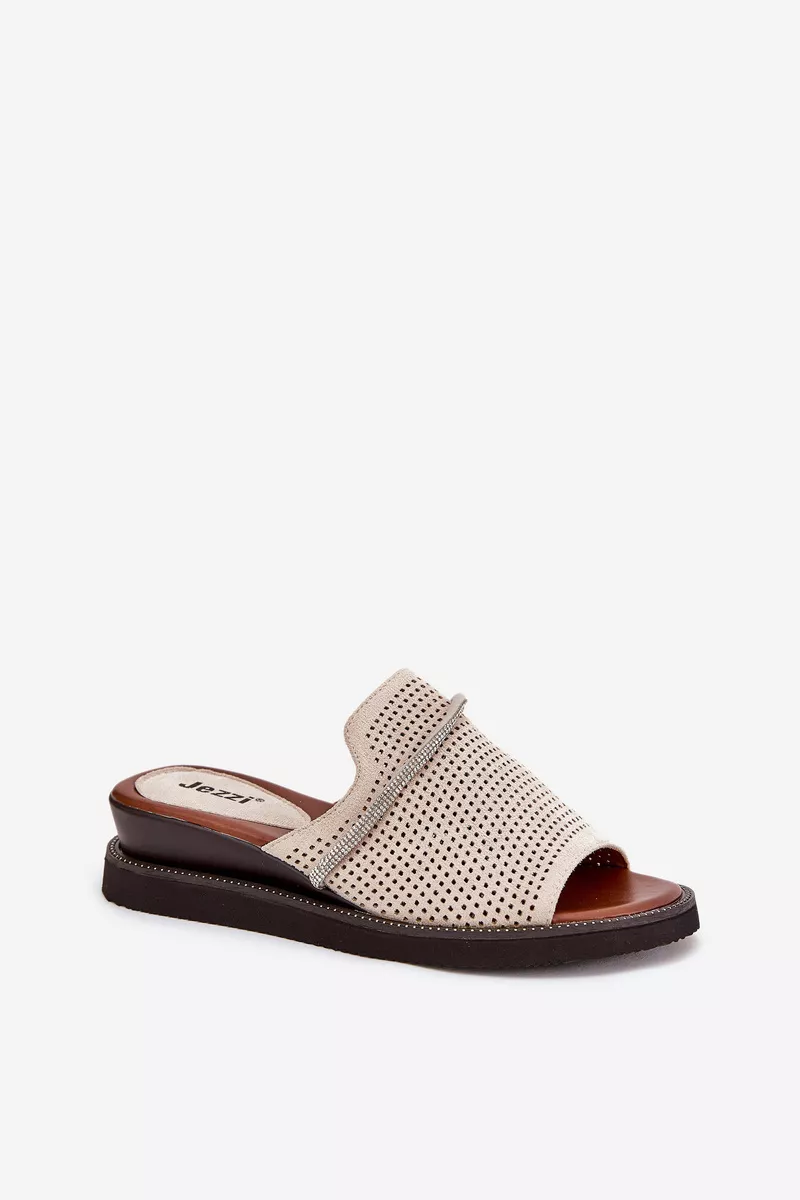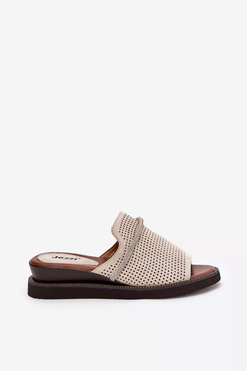 Šīs Jezzi sieviešu sandales ir izgatavotas no videi draudzīga zamšāda un apvieno stilu ar komfortu. Dekoratīvā siksna ar cirkonija akmeņiem priekšā piešķir tām elegantu un delikātu šarmu. Platforma nodrošina stabilitāti un komfortu ejot, bet mīkstā zole garantē komfortu visas dienas garumā. Tās ir ideāli piemērotas gan ikdienas valkāšanai, gan elegantiem pasākumiem. Lūdzu, izvēloties izmēru, skatieties izmēru tabulu.