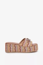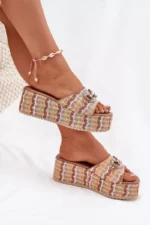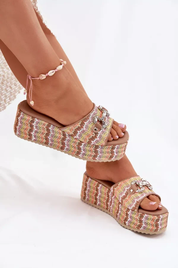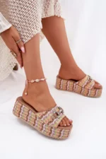 Sieviešu sandales ar pītiem rotājumiem, papēžiem un platformu ir stilīga izvēle vasaras dienām. Siksna ir rotāta ar smalku dekoratīvu detaļu, kas piešķir tām unikālu raksturu. Mīkstā zole nodrošina komfortu visas dienas garumā, bet papēža un platformas kombinācija garantē ērtumu un stabilitāti. Ideāli piemērotas ikdienas stilam. Izvēloties savu izmēru, lūdzu, izmantojiet izmēru tabulu.