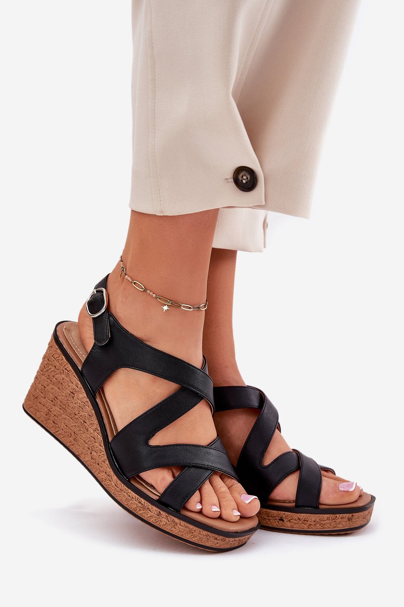 Šie sieviešu sandales, kas izgatavotas no ekoloģiskās ādas, apvieno eleganci un komfortu. Tām ir platforma ar imitētu pīšanu. Savīti siksniņas priekšā piešķir tām unikālu raksturu, bet sprādzes ļauj tām ideāli pielāgoties kājai. Mīkstā ādas zole nodrošina komfortu visas dienas garumā. Šie sandales ir ideāla izvēle vasaras dienām, apvienojot modernu izskatu ar funkcionalitāti. Lūdzu, izvēloties savu izmēru, skatieties izmēru tabulu.