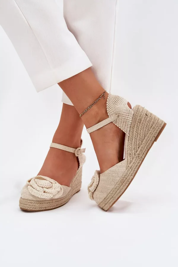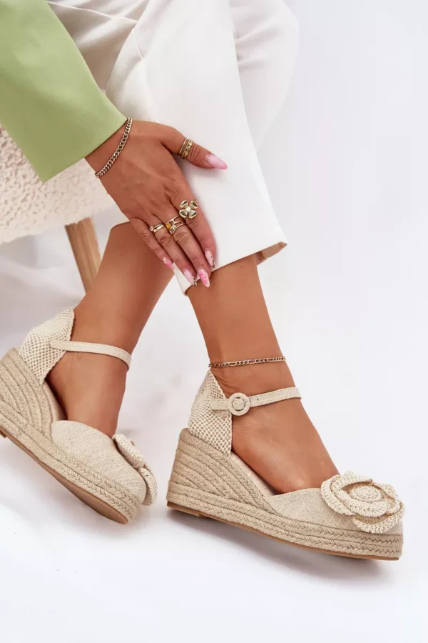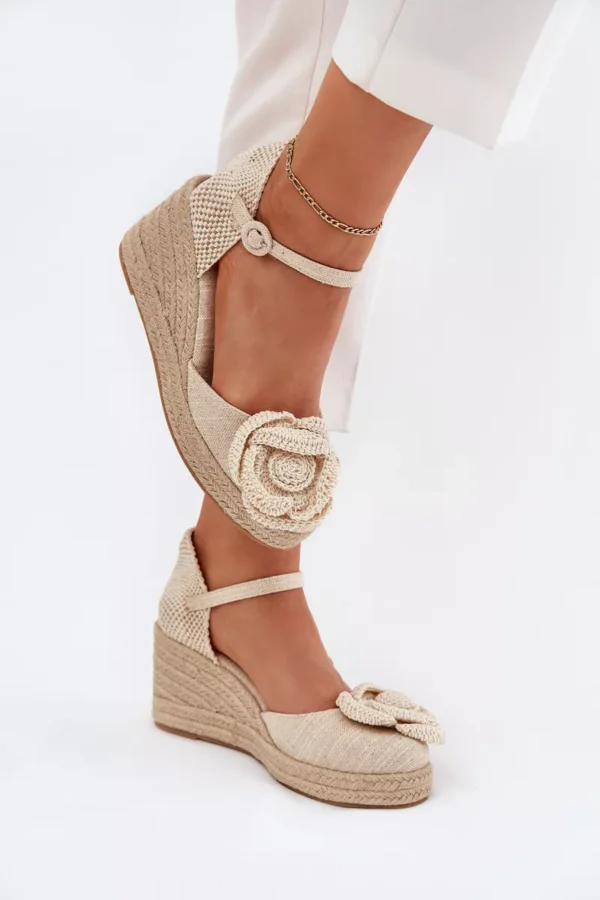 Šie sieviešu sandales, kas izgatavotas no tekstilmateriāla un aprīkotas ar pītu platformu, ir stilīga un ērta izvēle vasaras dienām. Slēgtie purngali piešķir eleganci, bet priekšpusē izšūtais ziedu motīvs piesaista uzmanību, piešķirot tām unikālu šarmu. Aizdarītas ar sprādzi un regulējamu siksnu, tās nodrošina perfektu pielāgošanos kājai. Ideāli piemērotas vasaras stila apģērbiem, tās apvieno komfortu ar modernu izskatu. Izvēloties izmēru, lūdzu, izmantojiet izmēru tabulu.