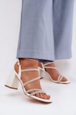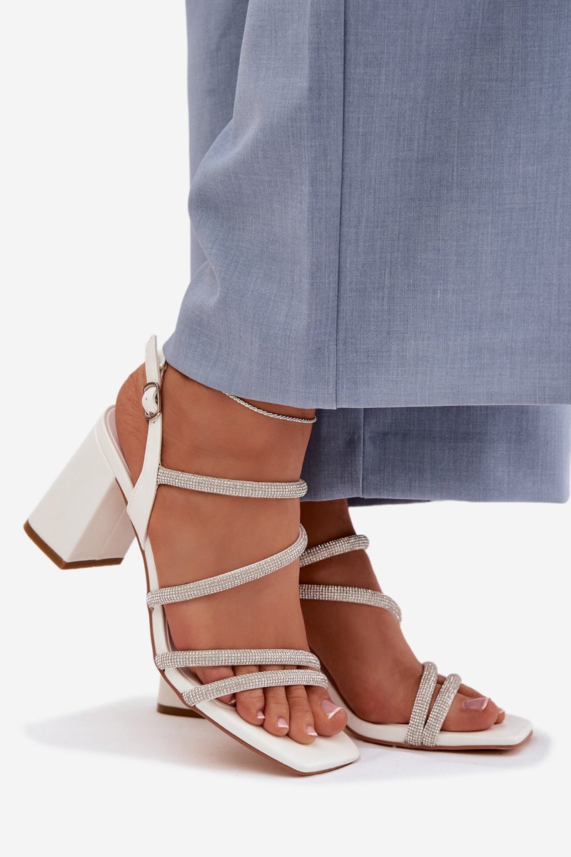 Sieviešu sandales ar platām papēdēm, siksnām un rhinestones, baltas Brelia