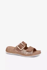 INBLU sieviešu sandales, kas izgatavotas no videi draudzīgas ādas, ir ērta un stilīga izvēle siltajām dienām. Šim modelim ir divas siksnas – viena ar Velcro un otra ar regulējamu sprādzi, kas nodrošina perfektu pielāgošanos jūsu pēdai. Regulējama sprādzes siksna ļauj tos perfekti pielāgot kājai, garantējot komfortu visas dienas garumā. Iekšējā zole "COMFORT ANATOMICO" ir konturēta, pielāgota kājas anatomiskajai formai un izgatavota no mīksta, dabiska āda. Divslāņu zole ir izgatavota no viegla un elastīga poliuretāna, kas nodrošina elastību un lielisku slodzes pārnesi uz virsmu. Izvēloties izmēru, lūdzu, skatieties izmēru tabulu.