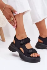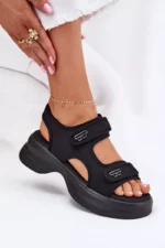 Šie sieviešu sandales, kas izgatavotas no tekstilmateriāla ar platformu, apvieno komfortu un stilu. Tās tiek fiksētas ar dubultu Velcro lenti, kas nodrošina ciešu piegulumu, bet divi zelta akcenti piešķir tām elegantu raksturu. Mīkstā zole nodrošina komfortu visas dienas garumā. Tās ir ideāli piemērotas ikdienas izskatam, apvienojot funkcionalitāti ar modernu izskatu. Izvēloties izmēru, lūdzu, izmantojiet izmēru tabulu.