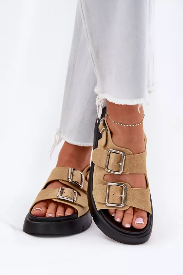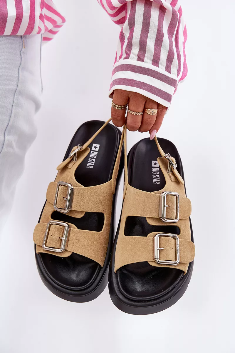 Big Star sieviešu sandales, izgatavotas no dabiskas zamšādas, ir eleganta izvēle siltajām dienām. Tās ir ar platformu, kas nodrošina komfortu un stabilitāti visas dienas garumā. Šim modelim ir divas regulējamas siksnas ar sprādzēm priekšā, kas nodrošina perfektu pielāgošanos, un aizmugurējā siksna papildu stabilitātei. Šie stilīgie sandales būs lielisks papildinājums jūsu vasaras garderobei, apvienojot funkcionalitāti ar modernu izskatu. Izvēloties savu izmēru, lūdzu, izmantojiet izmēru tabulu.