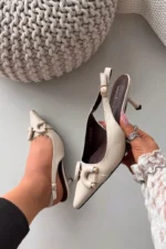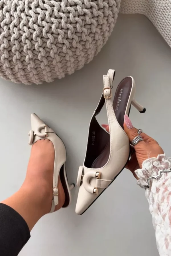 Sieviešu sandales, kas izgatavotas no ekoskinnas, ir stilīgs risinājums īpašiem gadījumiem. Slēgtas, smailas purngali piešķir tām klasisku un sievišķīgu raksturu, bet priekšējais dekoratīvais elements pievērš uzmanību un izceļ modeļa eleganci. Plānais papēdis skaisti izstiepj siluetu un piešķir kopējam izskatam šarmu. Modelis ar sprādzi un regulējamu siksniņu ļauj ideāli pielāgoties pēdai, nodrošinot komfortu un stabilitāti valkājot. Sandales ir ideālas papildinājumam daudzām stilizācijām, elegantiem kleitiem un īpašiem gadījumiem. Izvēloties izmēru, lūdzu, skatiet izmēru tabulu.