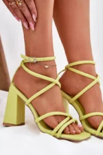 Šīs sieviešu sandales, kas izgatavotas no videi draudzīgas ādas un aprīkotas ar blokveida papēdi, ir lieliska izvēle dažādām situācijām. Tās tiek aizdarītas ar sprādzi un nodrošina ērtu kājas aptvērumu. Šis modelis izceļas ar siksnām, kas aptver pēdu, piešķirot tam izteiksmīgu, stilīgu raksturu. Tie ir ideāli piemēroti gan vakara izklaidēm, gan formālākām norisēm, apvienojot komfortu ar modernu izskatu. Izvēloties izmēru, lūdzu, izmantojiet izmēru tabulu.