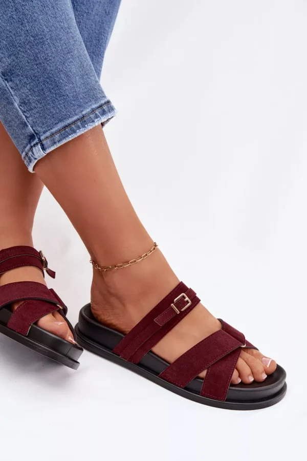 Stilīgas sieviešu sandales no videi draudzīga zamšāda ir ērta izvēle siltajām dienām. Modelis ar siksnām, kas rotātas ar nelielu zelta sprādzi, piesaista uzmanību un piešķir visam izskatam smalku, sievišķīgu raksturu. Maigi izliektā zole nodrošina komfortu un labāku piegulumu. Šie sandales ir ideāli piemēroti ikdienas vasaras apģērbiem. Izvēloties izmēru, lūdzu, skatieties izmēru tabulu.