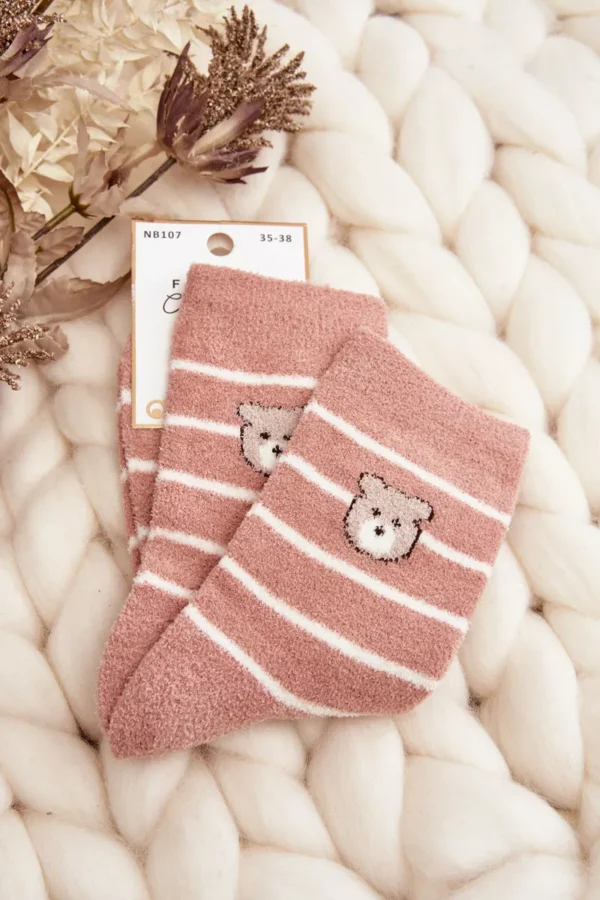 Sieviešu siltas svītrainas zeķes ar rožainu lācīti