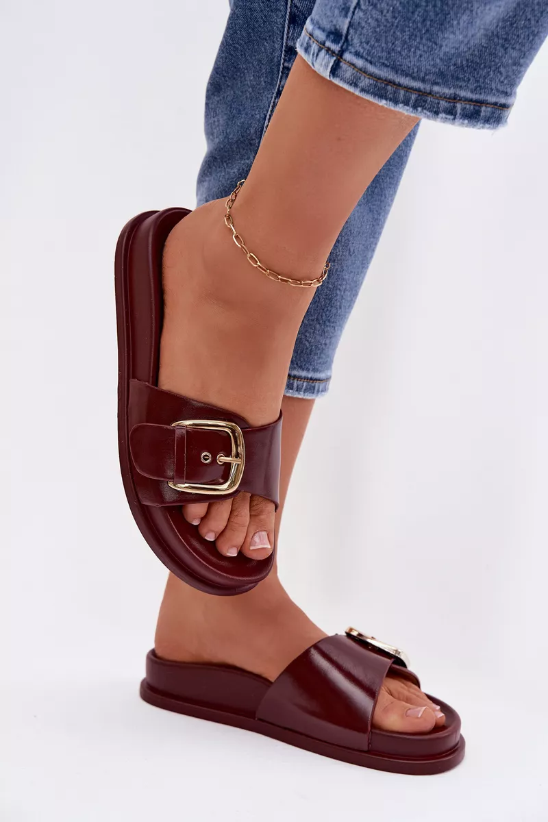 Stilīgas sieviešu sandales uz smalkas platformas. Siksna ir izgatavota no videi draudzīgas ādas un dekorēta ar zelta sprādzi, kas visai apavai piešķir elegantu izskatu. Nedaudz izliekta zole nodrošina komfortu un labu piegulumu. Šis modelis ir ideāli piemērots gan ikdienas vasaras apģērbiem, gan elegantiem apģērbu komplektiem. Izvēloties izmēru, skatieties izmēru tabulu.