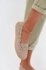 Sieviešu espadrilles, rotātas ar ziedu motīviem un atvērtām griezumiem, ir ideāla izvēle siltajiem dienām. Smalkie detaļi piešķir tām sievišķīgu raksturu, bet elpojošā augšdaļa nodrošina komfortu valkājot. Pielāgojams modelis ar elastīgu piestiprinājumu garantē ērtību un ātru uzvilkšanu, savukārt pletotā zole uzsver vasaras, brīvdienu atmosfēru. Ekoloģiskās ādas iekšējā zole palielina komfortu un nodrošina pareizu piegulšanu kājai. Šīs stilīgās espadrilles lieliski papildinās vasaras apģērbu – no kleitām līdz viegliem, ikdienišķiem komplektiem. Izvēloties izmēru, lūdzu, skatiet izmēru tabulu.