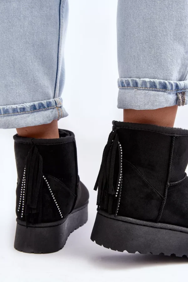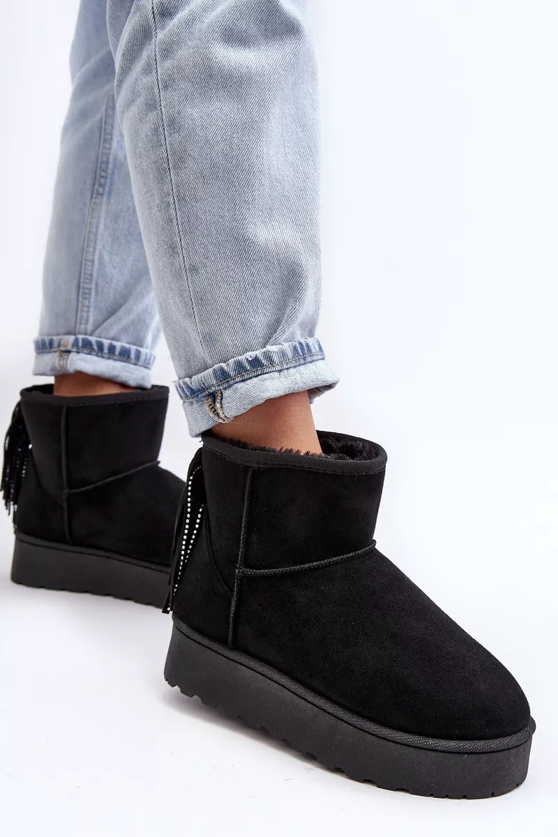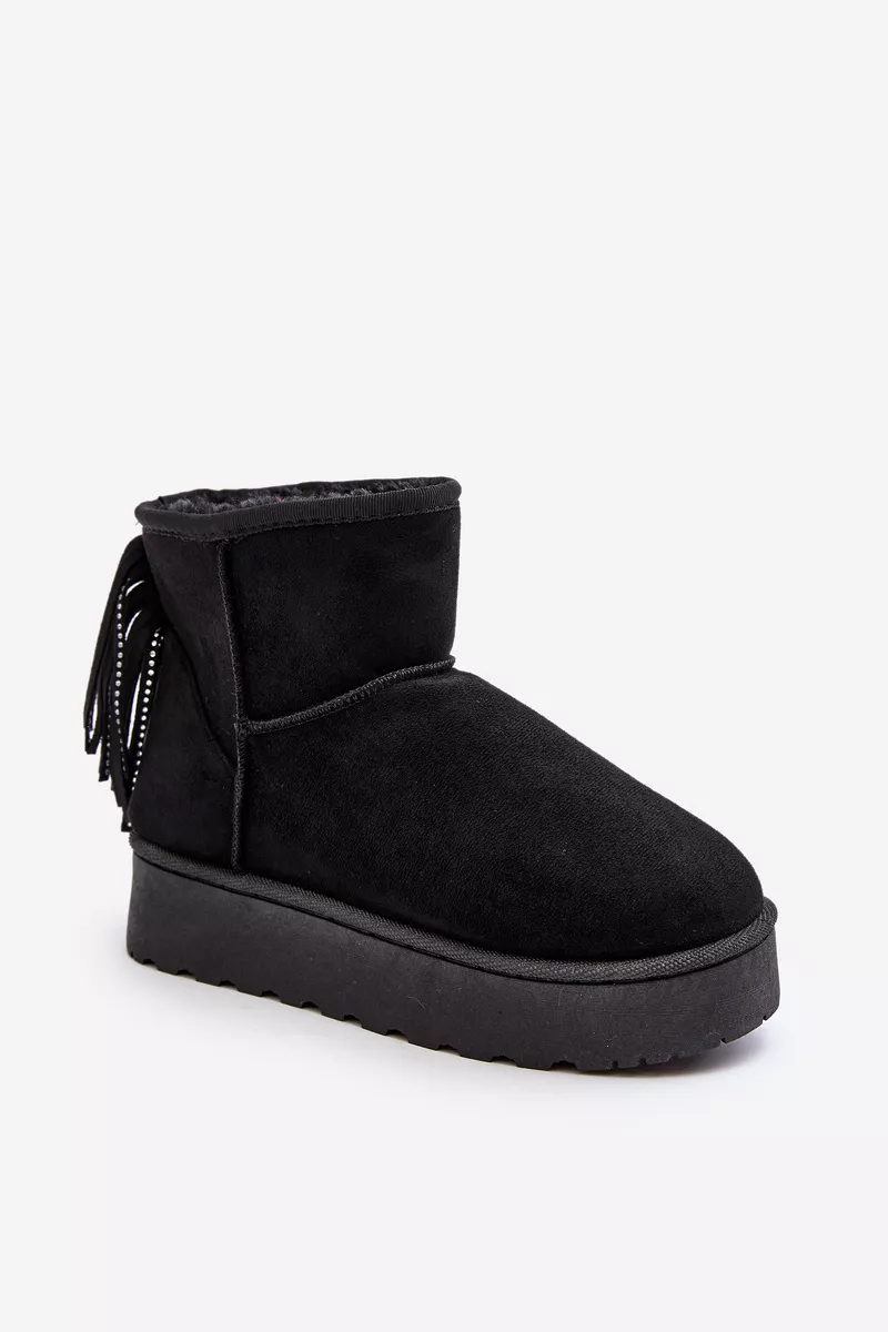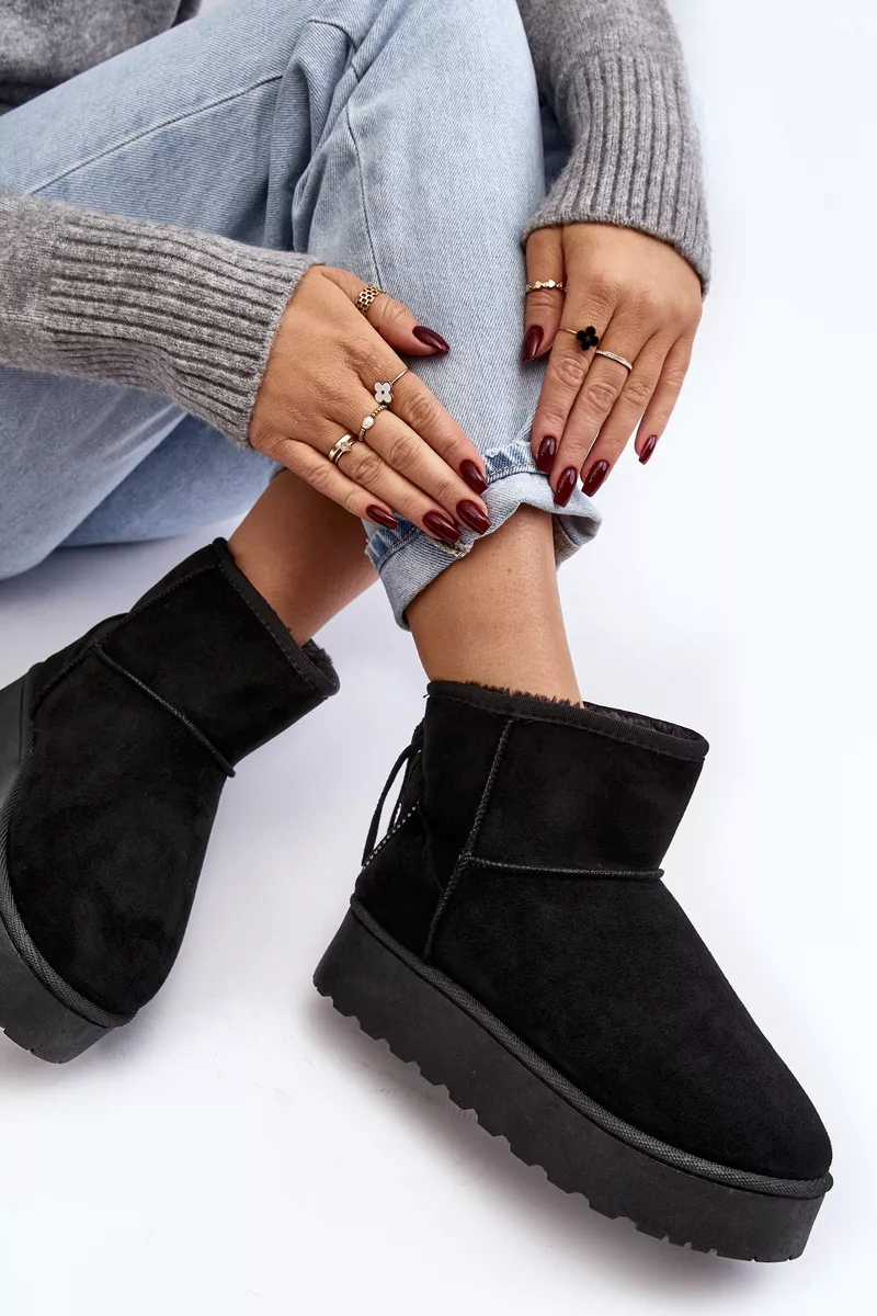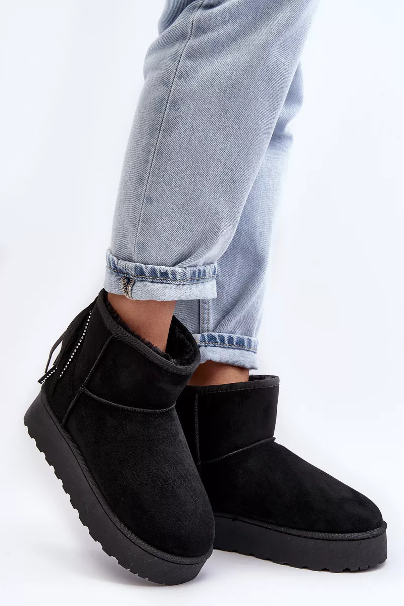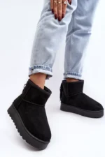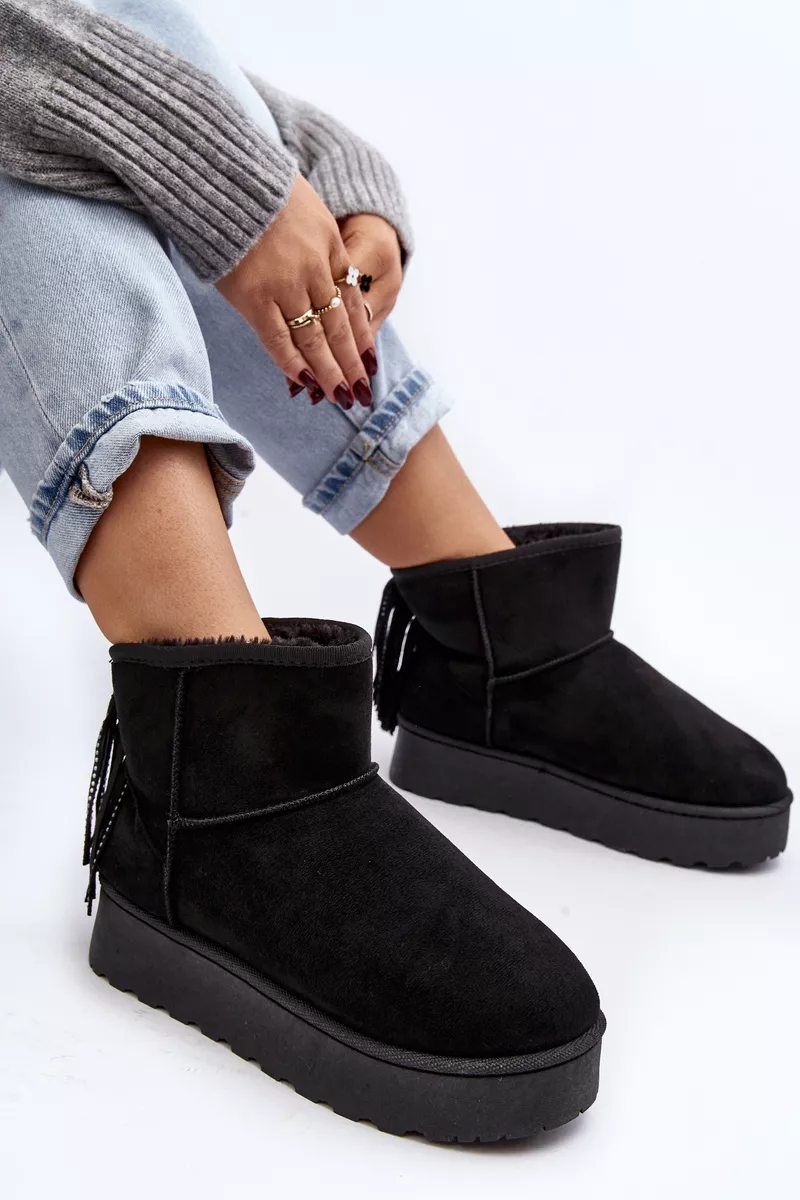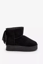 Sieviešu sniega zābaki, izgatavoti no videi draudzīga zamšāda. Izgatavoti uz izturīgas gumijas zoles. Potītes aizmugure ir dekorēta ar kniedēm. Iekšpuse ir odere ar biezu kažokādu. Šis modelis pieejams arī bērnu izmēros. Izveidojiet komplektu mammai un bērnam! Izvēloties izmēru, skatieties izmēru tabulu.