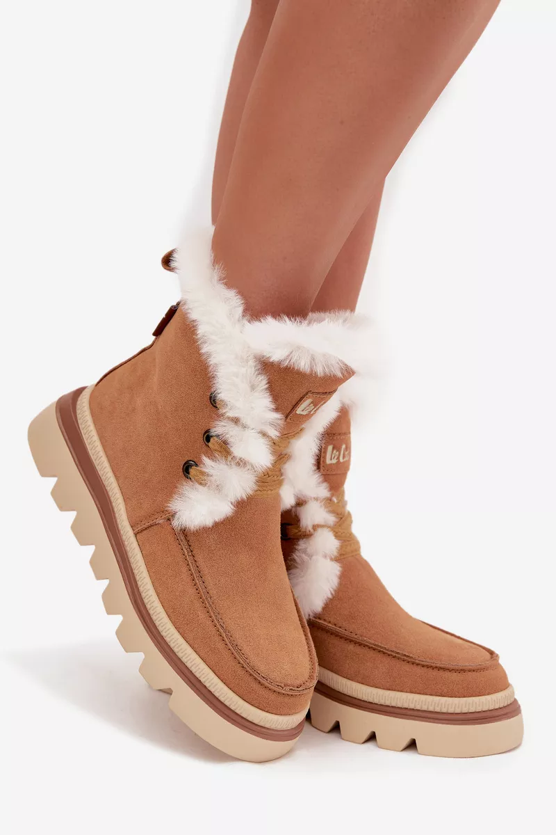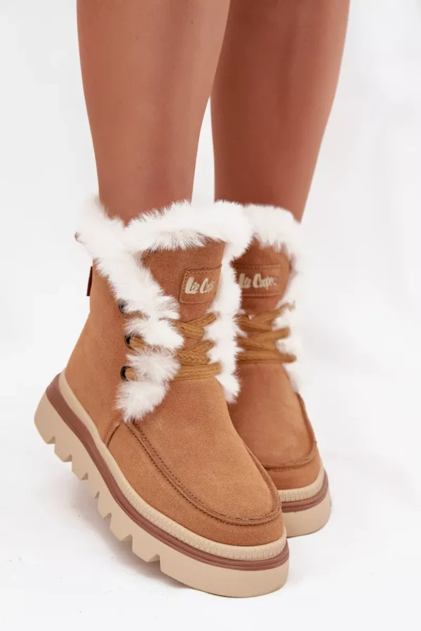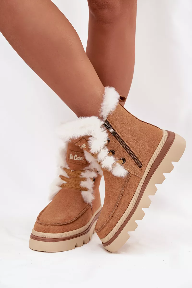 Lee Cooper sieviešu sniega zābaki. Izgatavoti no dabiskas zamšādas. Modelim ir izturīga gumijas zole, kas nodrošina stabilitāti un labu saķeri pat uz slidenām virsmām. Iekšpuse ir odere ar mīkstu kažokādas materiālu, kas nodrošina siltumu un komfortu ziemas dienās. Sniega apavi ar auklām, kas ļauj tos perfekti pielāgot kājai, un rāvējslēdzēju, kas atvieglo to uzvilkšanu un novilkšanu. Ideāla izvēle sievietēm, kas novērtē komfortu, praktiskumu un modernu izskatu – ideāli piemēroti ziemas pastaigām un ikdienas izbraucieniem. Izvēloties izmēru, skatieties izmēru tabulu.