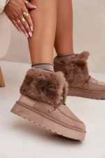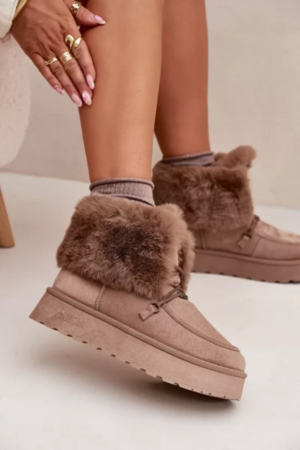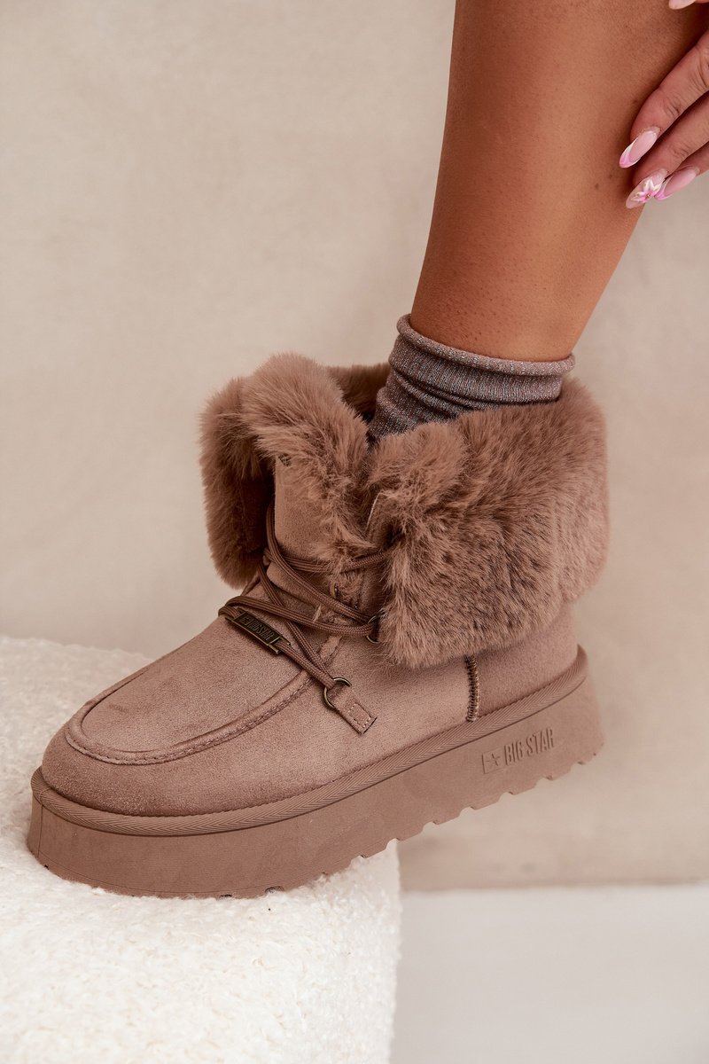 Big Star sieviešu sniega zābaki ir nepieciešamība ziemai! Izgatavoti no ekoloģiskas zamšādas un aprīkoti ar ūdensnecaurlaidīgu membrānu, tie saglabās siltumu un sausumu pat aukstākajās dienās. Platforma nodrošina komfortu un vieglumu, bet mīkstais pūkas pildījums iekšpusē un virspusē garantē ērtības. Turklāt priekšpusē esošās mežģīnes piešķir tiem modernu izskatu. Ideāli piemēroti ziemas pastaigām, tie apvieno funkcionalitāti ar modernu stilu! Izvēloties izmēru, lūdzu, izmantojiet izmēru tabulu. Izvēloties izmēru, lūdzu, izmantojiet izmēru tabulu.