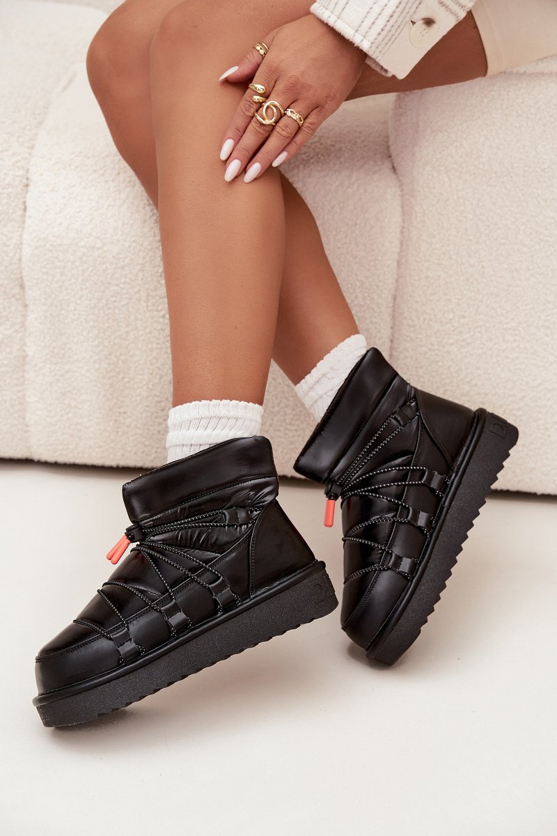 Sieviešu sniega zābaki no D.Franklin. Izgatavoti no izturīga neilona un videi draudzīgas ādas, tie efektīvi aizsargā pret aukstumu un mitrumu, vienlaikus izskatoties moderni un stilīgi. Iekšpuse ir odere ar mīkstu kažokādu, kas nodrošina siltuma komfortu un ērtības pat aukstā laikā. Modelis ir uzstādīts uz gumijas zoles, kas garantē stabilitāti un saķeri uz dažādām virsmām. Papildu priekšrocība ir priekšējā daļa ar auklām, kas nodrošina labāku piegulumu un aizsargā pret aukstuma iekļūšanu zābakā. Šie sniega zābaki ir piemēroti gan ikdienas valkāšanai, gan ziemas ceļojumiem. Izvēloties izmēru, skatieties izmēru tabulu.