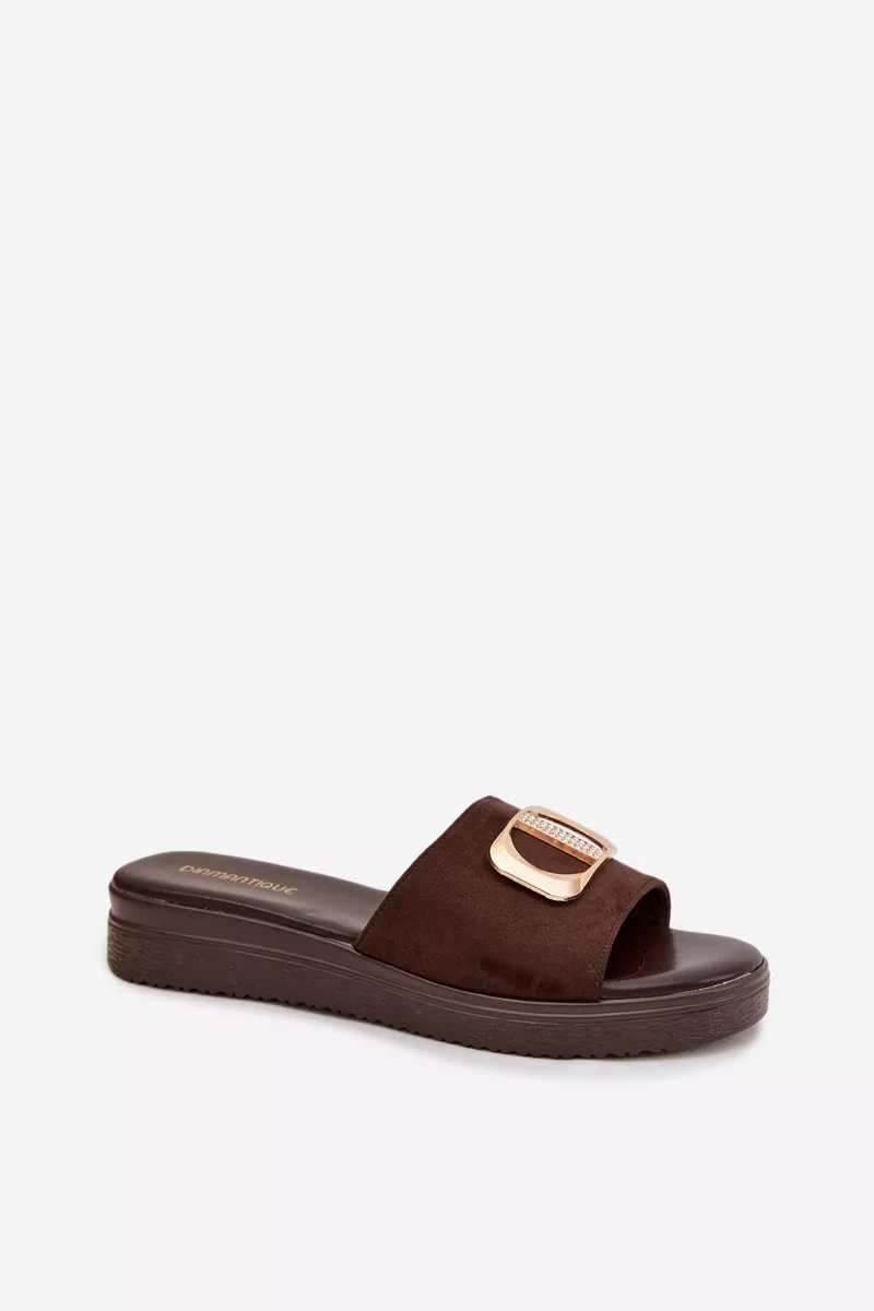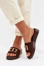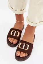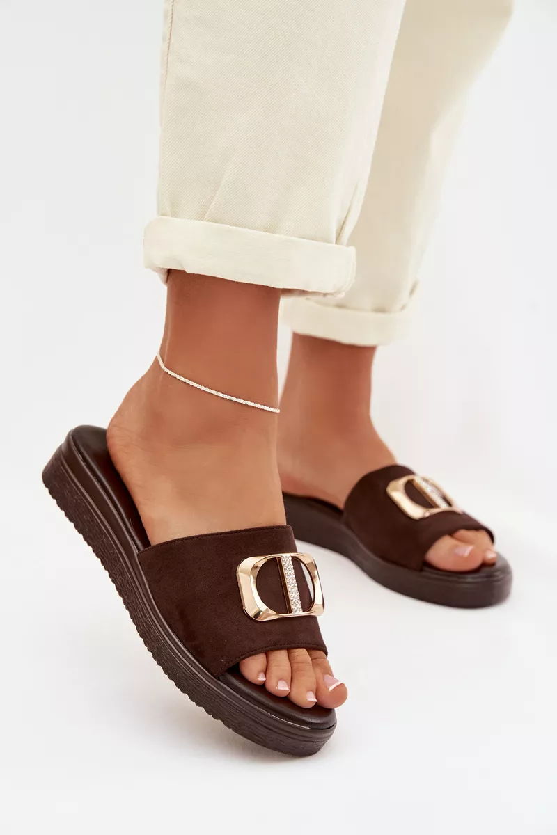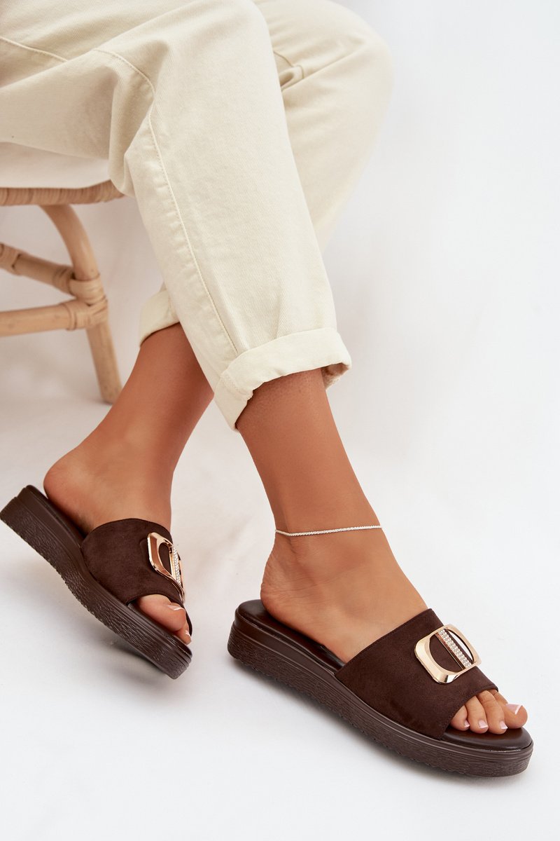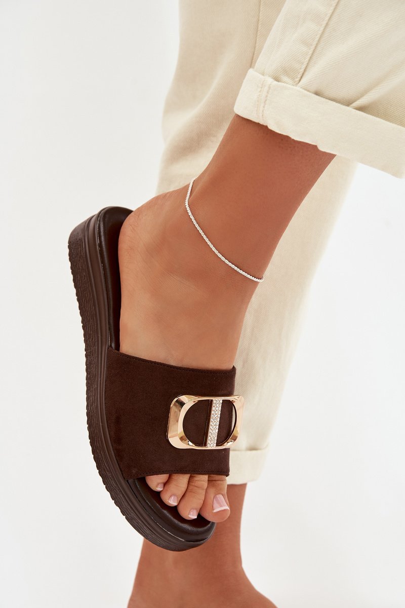 Sieviešu šokolādes krāsas čības ar zelta detaļām Elmera
