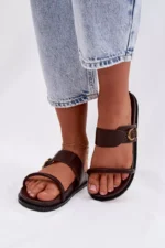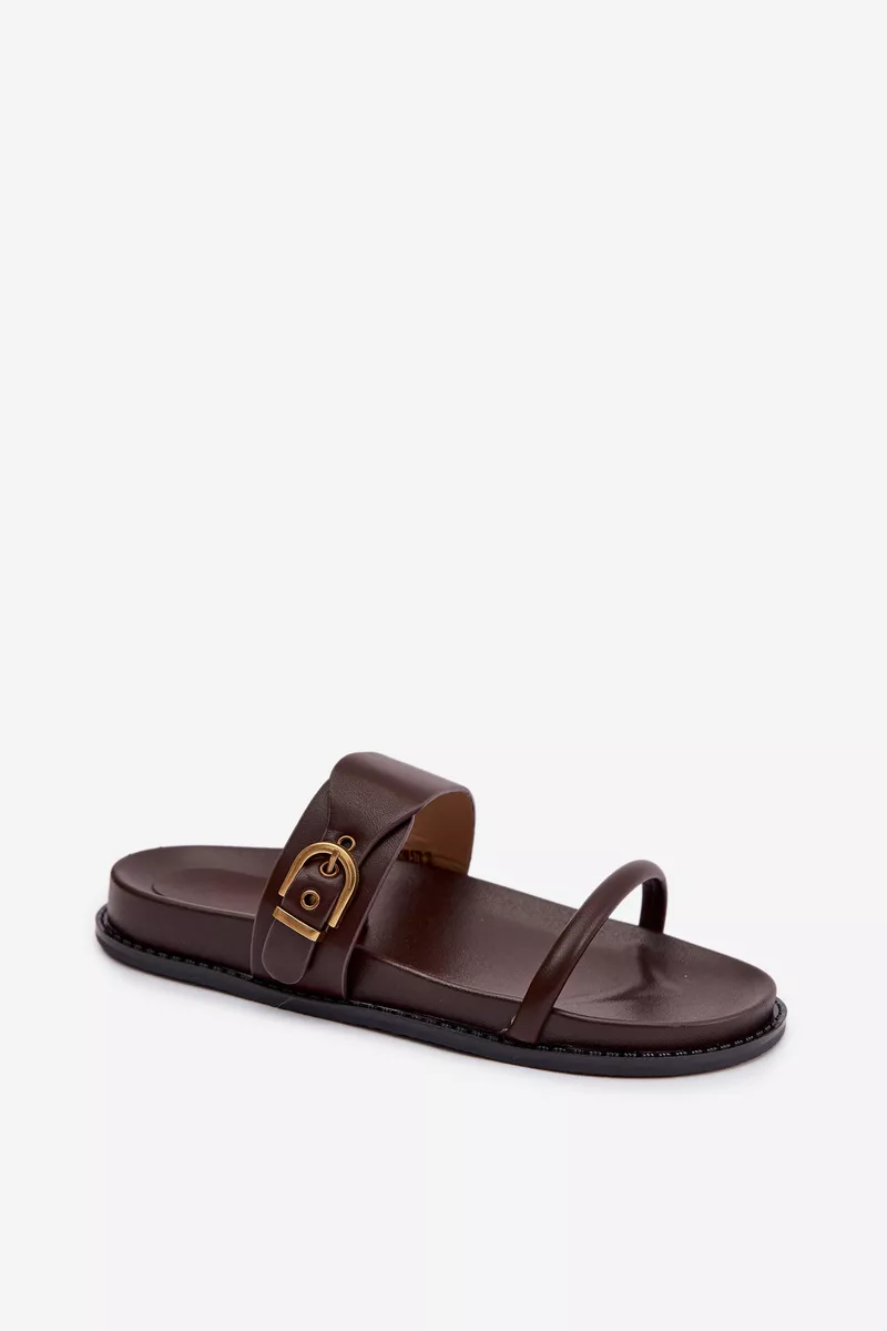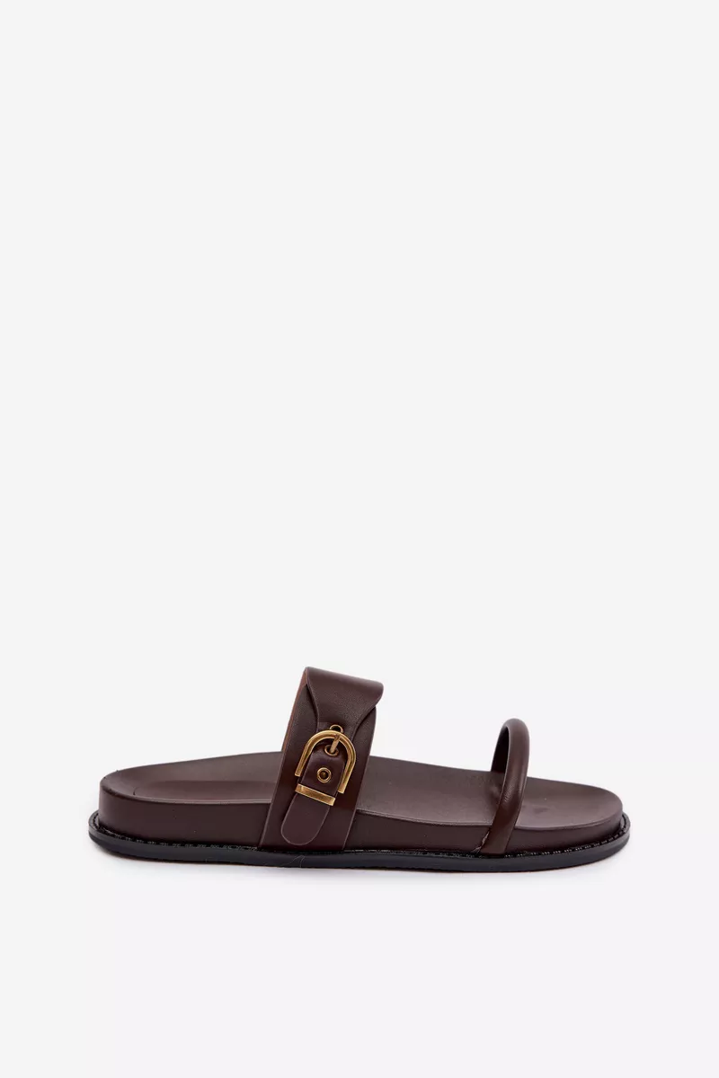 Sieviešu šokolādes krāsas čības ar zelta sprādzi Sarilisse