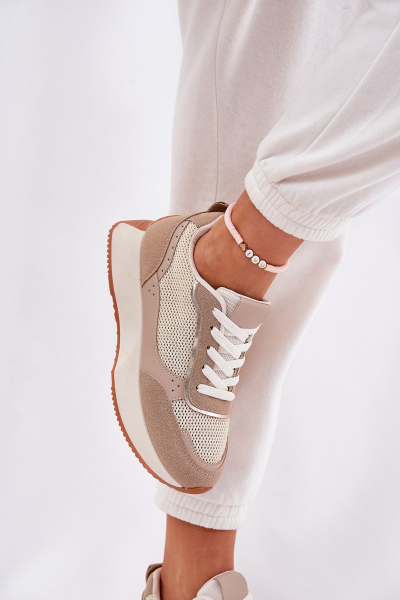 Sieviešu sporta apavi, izgatavoti no ekoloģiskā zamšāda un tīkla, nodrošina vieglumu un elpojošumu. Apavi ir uz platformas, kas nodrošina papildu augstumu un komfortu. Iekšpusē ir ar audumu pārklāta putu zole, kas garantē komfortu un amortizāciju katrā solī. Stilīgi un funkcionāli, šie apavi ir ideāli piemēroti ikdienas stilam, apvienojot modernu izskatu ar ikdienas komfortu. Izvēloties savu izmēru, lūdzu, skatieties izmēru tabulu.