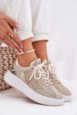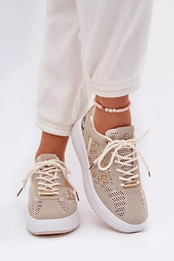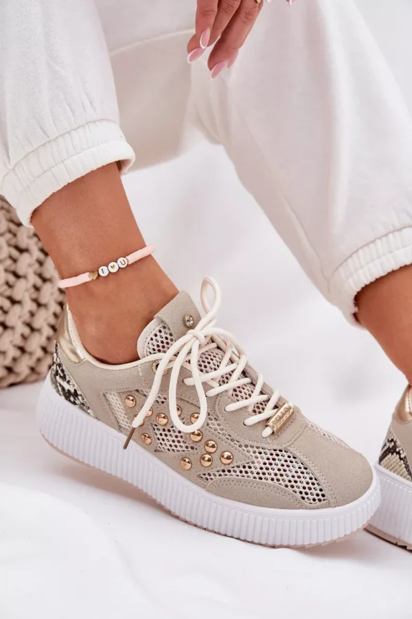 Sieviešu sporta apavi, kas izgatavoti no ekoloģiskā zamšāda un tīkla kombinācijas, nodrošinot vieglumu, elpojošumu un modernu izskatu. Sānu augšdaļā ir kniedes, kas piešķir apaviem unikālu raksturu. Iekšpusē ir mīksta putu zole, kas pārklāta ar audumu, nodrošinot komfortu un amortizāciju, ejot. Šie apavi ir ideāli piemēroti ikdienas stilam, apvienojot funkcionalitāti ar modernu akcentu, padarot tos ideālus gan aktīvam, gan brīvā laika apģērbam. Izvēloties izmēru, lūdzu, skatieties izmēru tabulu.