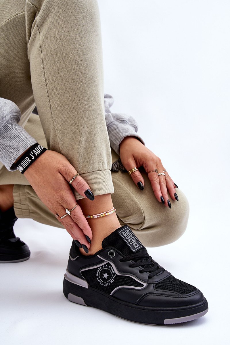 Sieviešu sporta apavi no zīmola Big Star ir radīti aktīvām sievietēm. Šis modelis ir ideāli piemērots pastaigām, tikšanās ar draugiem vai iepirkšanās. Apaviem ir mīksta zole, kas izgatavota no izturīga un nodilumizturīga materiāla. Zole ir izgatavota no gumijas. Apavu augšdaļa ir izgatavota no ekoloģiskās ādas un tekstilmateriāla kombinācijas. Izvēloties izmēru, lūdzu, izmantojiet izmēru tabulu.