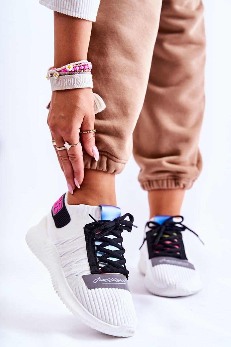 Klasiskās sieviešu sporta kurpes ir izgatavotas no elpojoša materiāla. Tās ir uzstādītas uz smalkas plastmasas platformas. Komfortu nodrošina mīksta, noņemama auduma zole. Apaviem ir arī aizdare, kas ļauj pielāgot apavu platumu jūsu pēdas platumam. Modelis ir dekorēts ar gumijas elementiem. Noteikti apskatiet visu mūsu sporta apavu kolekciju! Izvēloties izmēru, izmantojiet izmēru tabulu.
